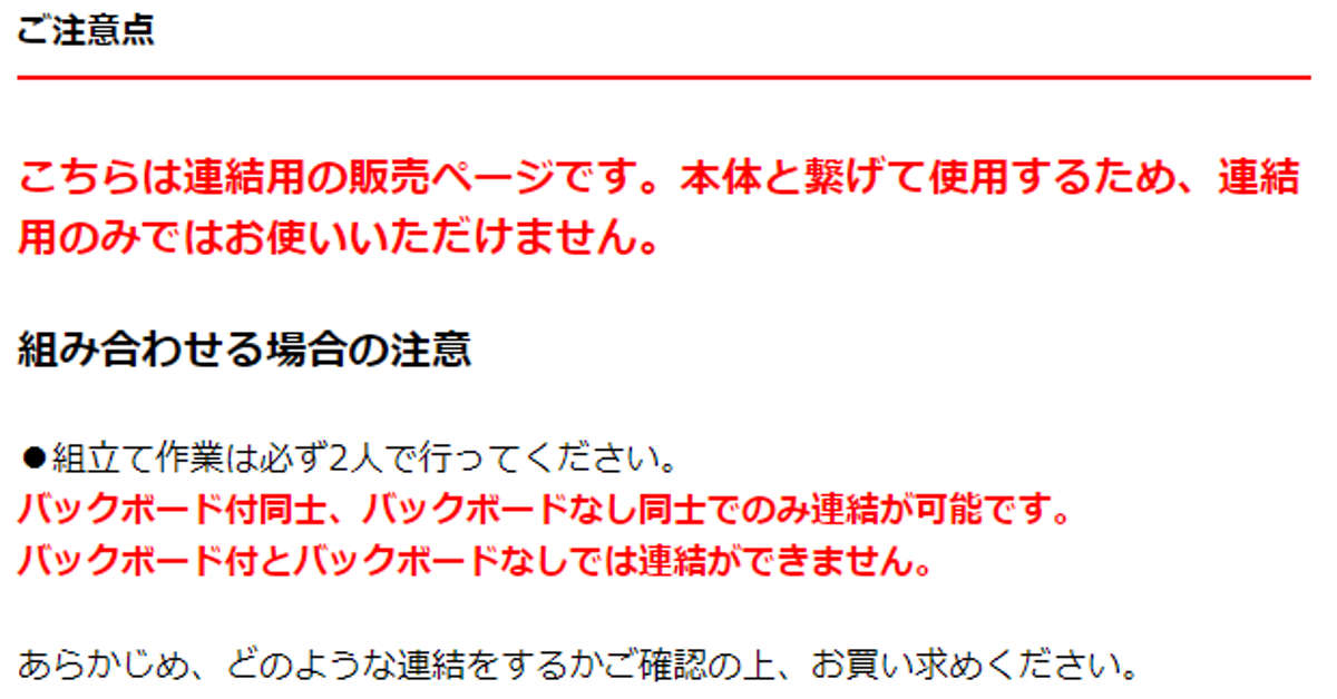 バックボード付同士、バックボードなし同士でのみ連結が可能です。