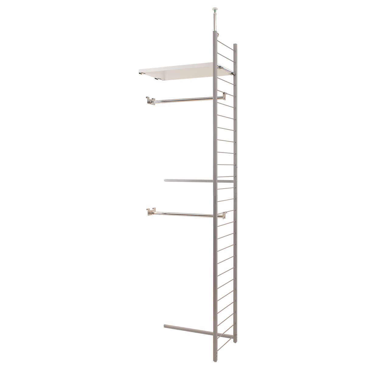 工事不要で設置できる突っ張り式突っ張り式なので、壁や天井に穴をあけるなどの工事不要で簡単に設置できます。頑丈なスチール製で、耐荷重は十分。安心してお使いいただけます。
