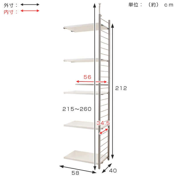 | サイズ | 本体:(約)幅58×奥行40×高さ215~260(cm) 収納部内寸:(約)幅56×奥行34.5×高さ8(cm) |