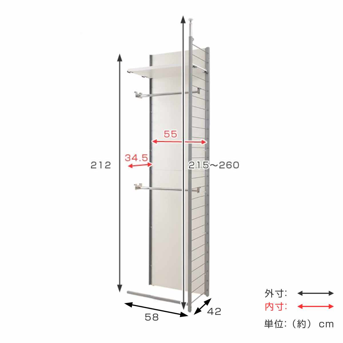 | サイズ | 約 幅58×奥行42×高さ215~260(cm) |