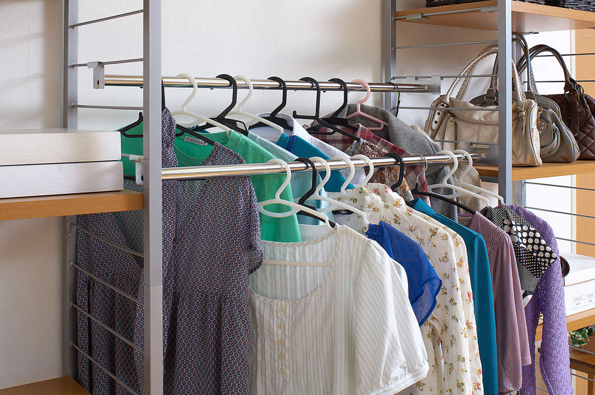 ●頑丈なスチール製で、お洋服をたっぷり掛けられます。