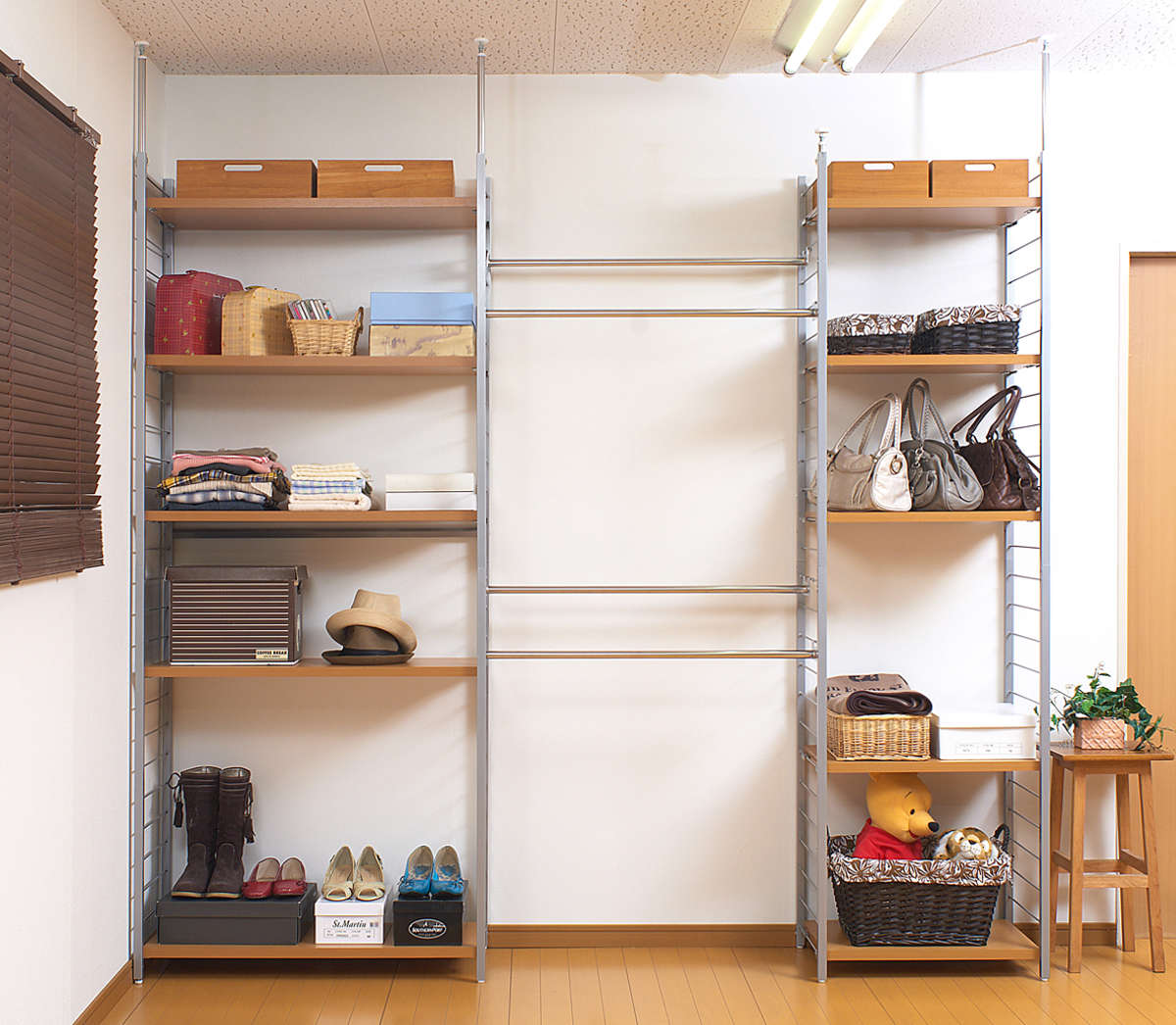 突っ張り間仕切りラックと組み合わせて、収納力UP