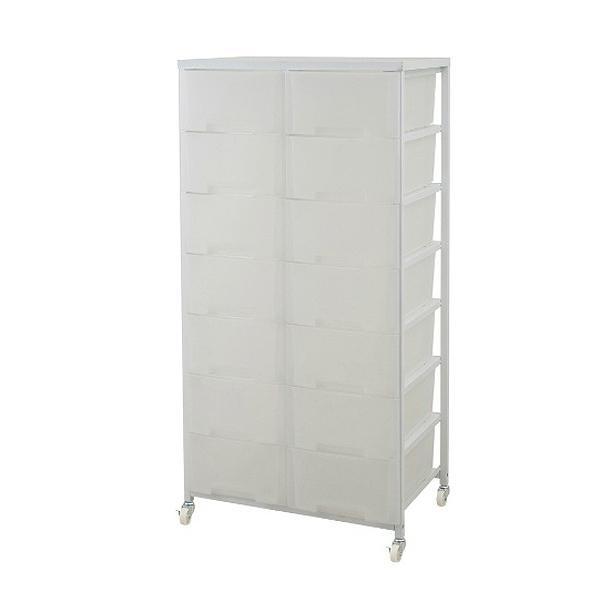 衣装ケース 大量収納プラスチックチェスト 2列7段 ( 幅69×奥行48×高さ144cm 収納ボックス 引き出し ハイタイプ 収納ケース チェスト 衣類収納 大容量 タンス キャスター付き リビング収納 クローゼット ランドリー 日本製 スリム ) 【ホワイト】