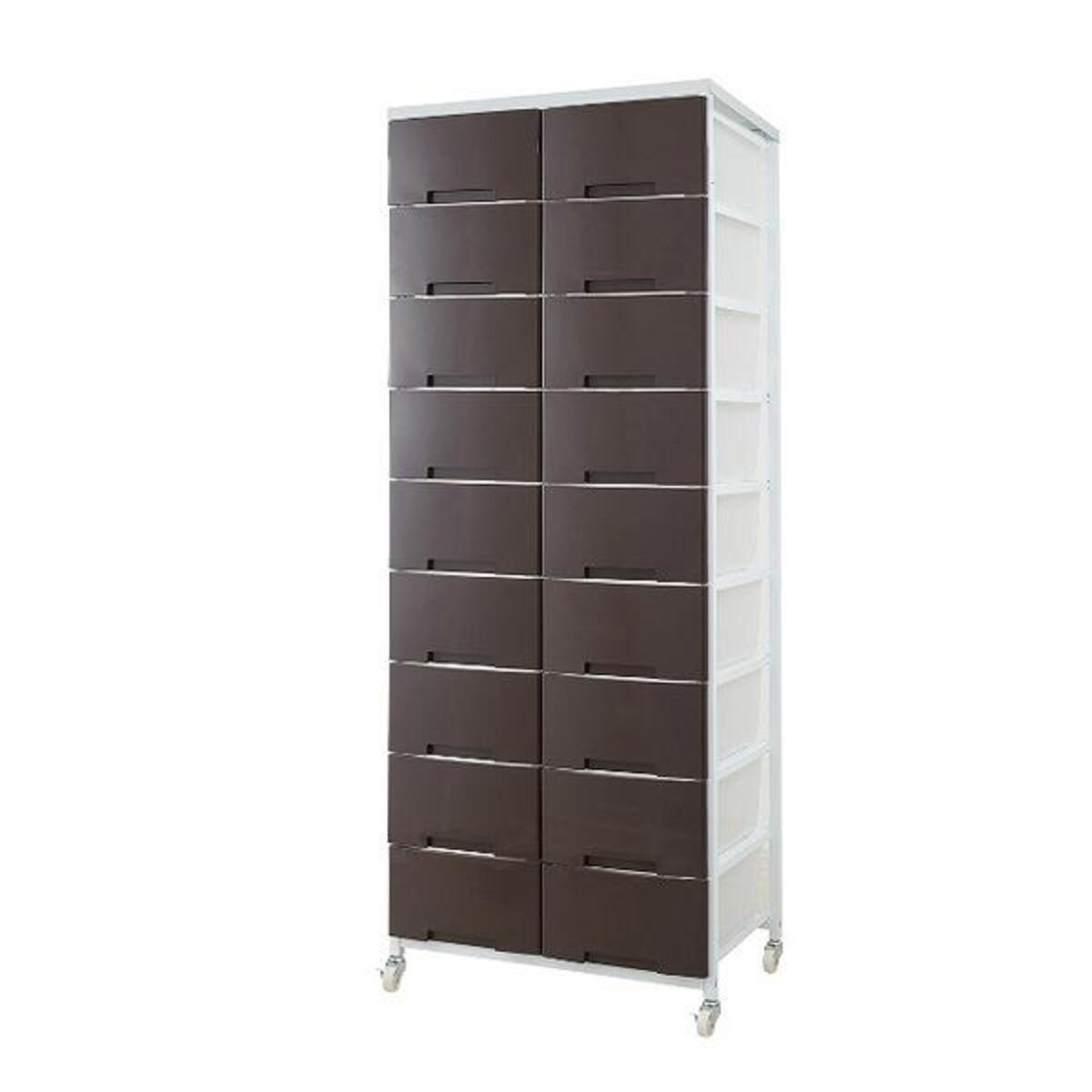 衣装ケース 大量収納プラスチックチェスト 2列9段 ( 幅69×奥行48×高さ181cm 収納ボックス 引き出し ハイタイプ 収納ケース チェスト 衣類収納 大容量 タンス キャスター付き リビング収納 クローゼット ランドリー 日本製 スリム ) 【ブラウン】