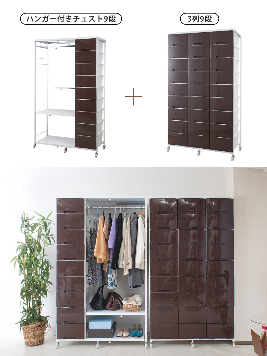![]() ハンガー付きチェスト9段 | ![]() ハンガーラックキャスター付き |