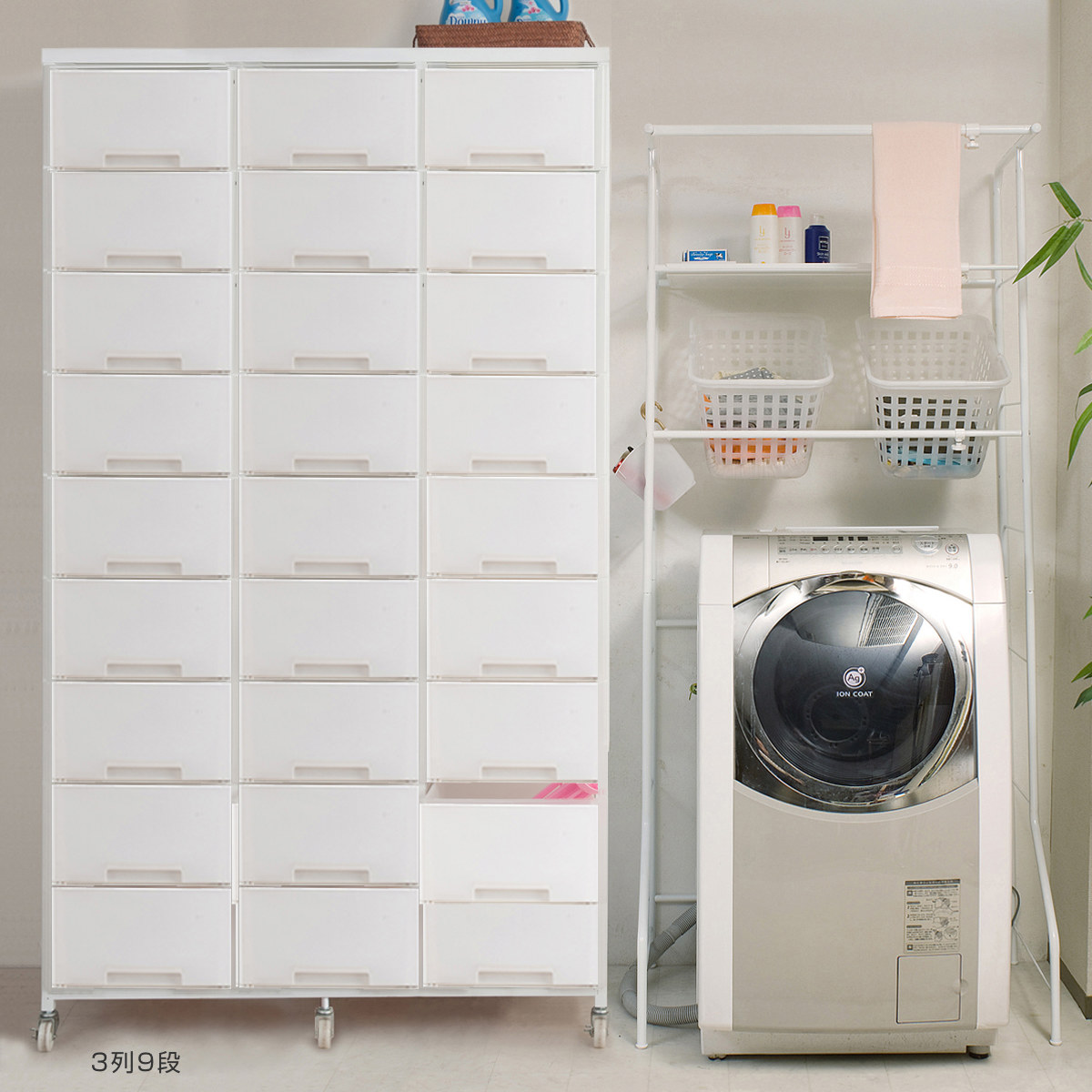 衣装ケース 大量収納プラスチックチェスト 3列9段 ( 幅103×奥行48×高さ181cm 収納ボックス 引き出し ハイタイプ 収納ケース チェスト 衣類収納 大容量 タンス キャスター付 リビング収納 クローゼット ランドリー 日本製 スリム ) 【ホワイト】