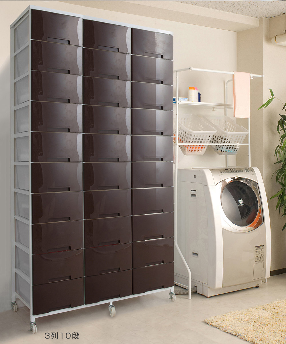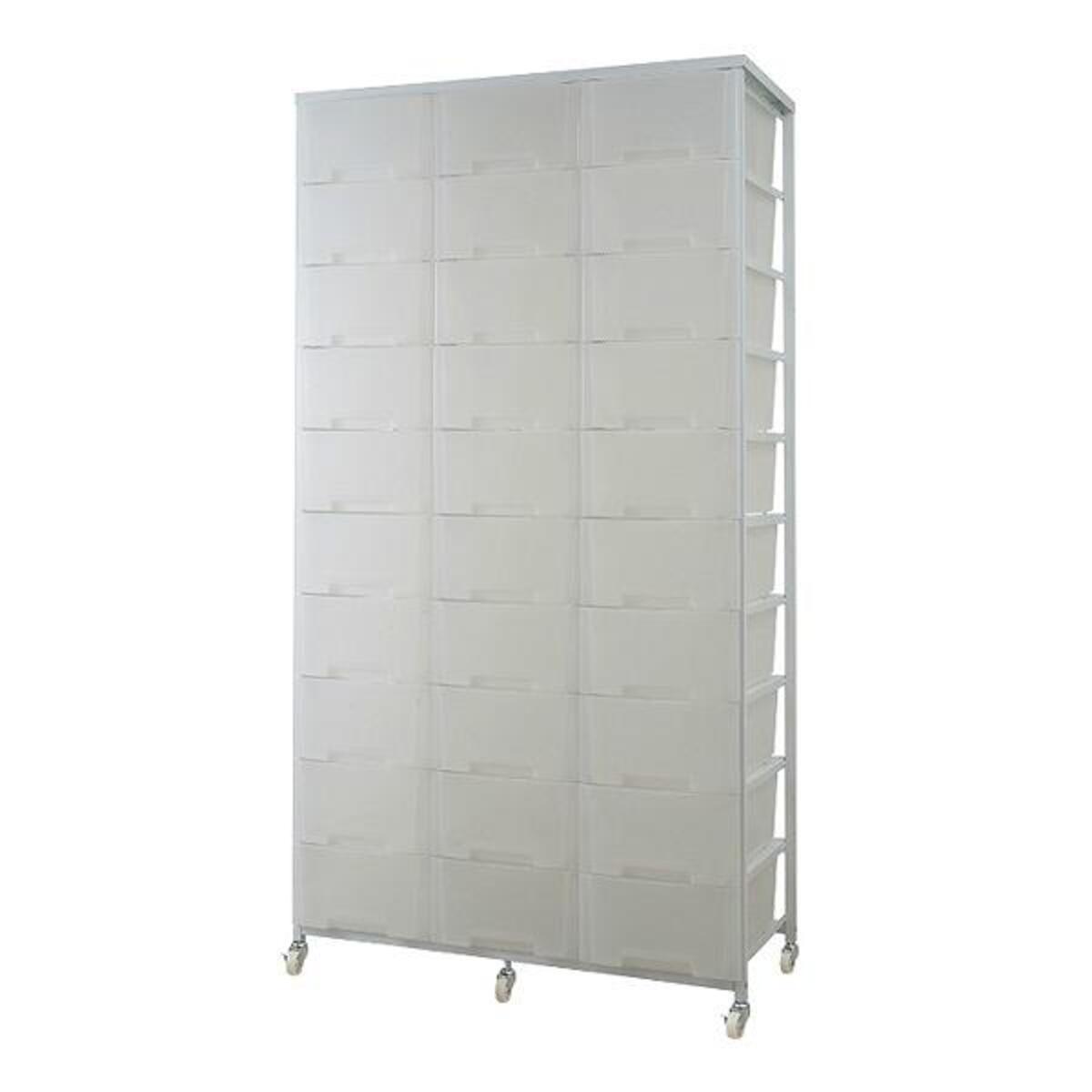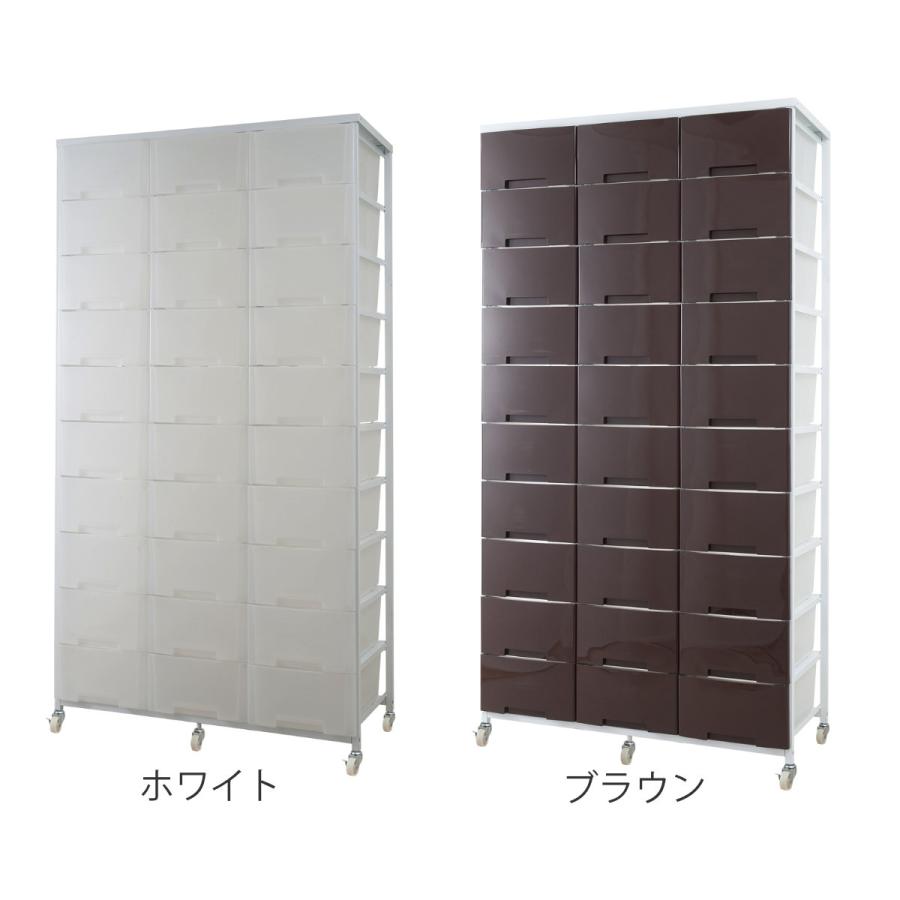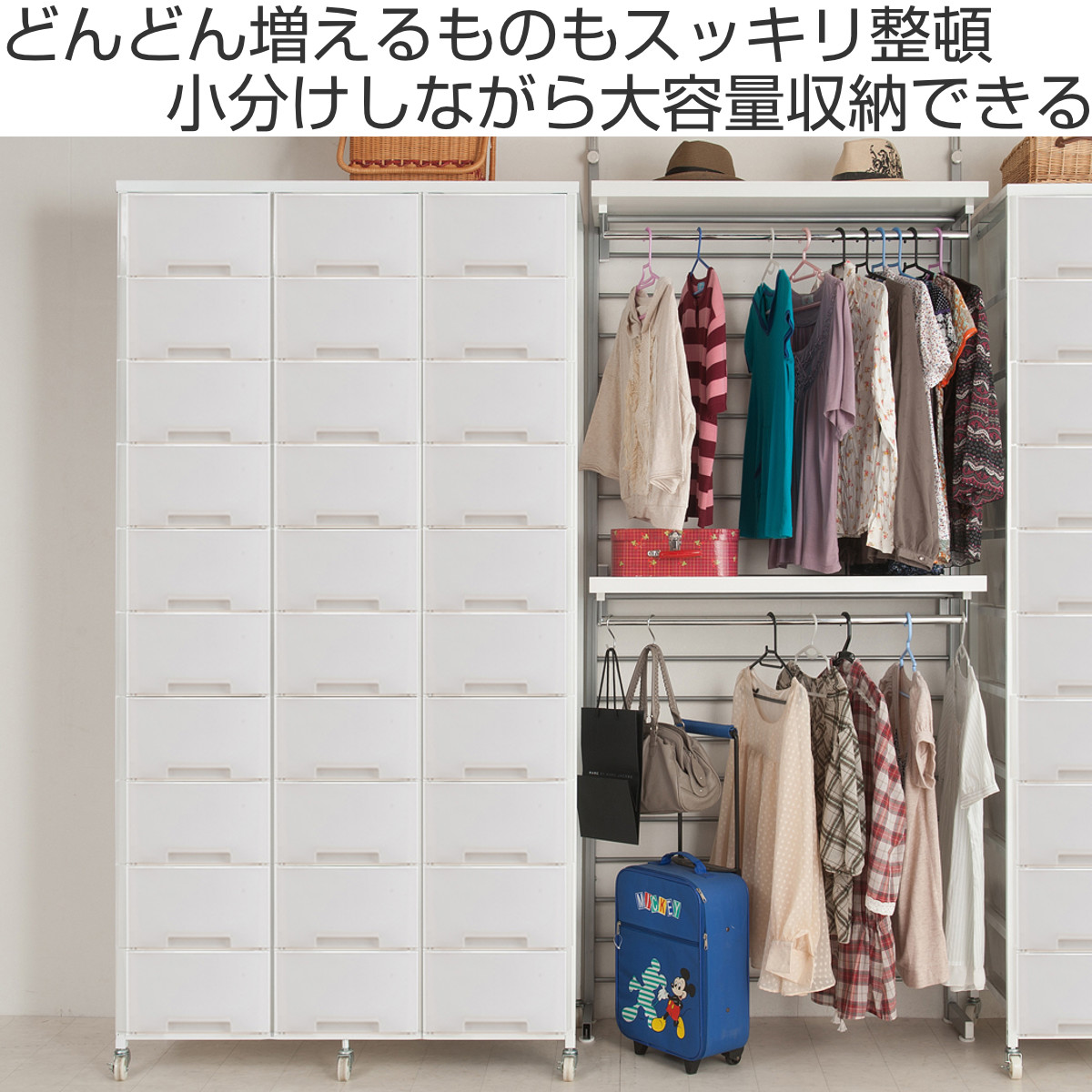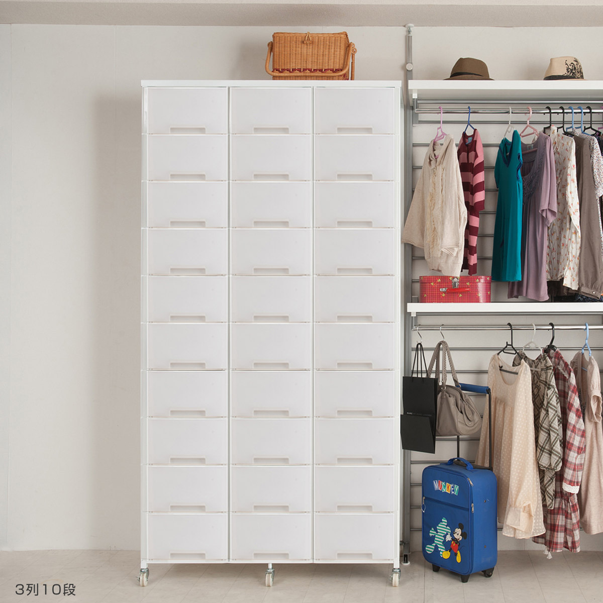 衣装ケース 大量収納プラスチックチェスト 3列10段 ( 幅103×奥行48×高さ200cm 収納ボックス 引き出し ハイタイプ 収納ケース チェスト 衣類収納 大容量 タンス キャスター付 リビング収納 クローゼット ランドリー 日本製 スリム ) 【ホワイト】