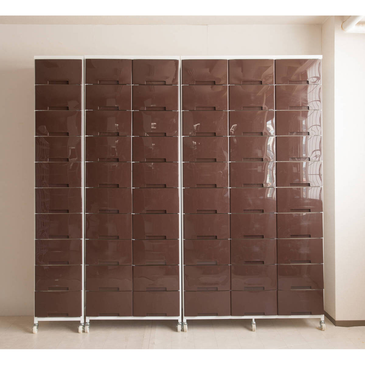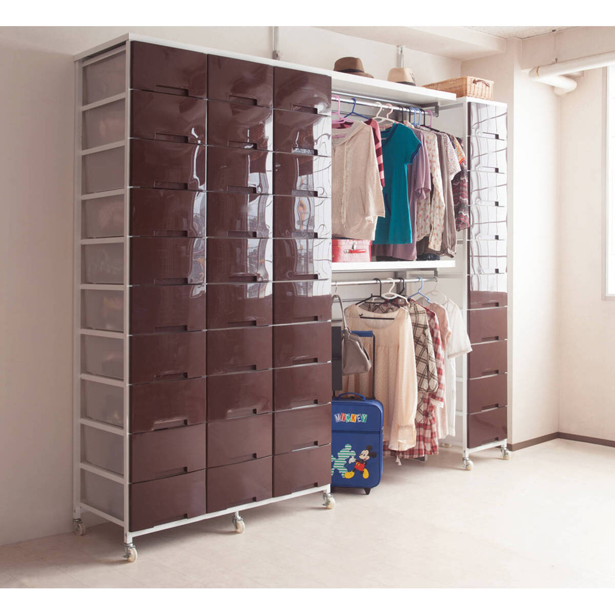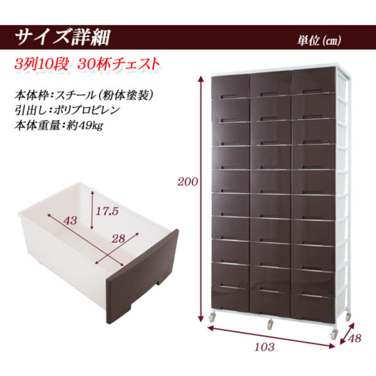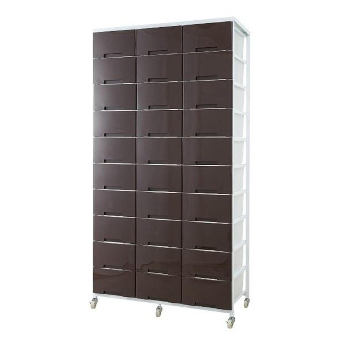 衣装ケース 大量収納プラスチックチェスト 3列10段 ( 幅103×奥行48×高さ200cm 収納ボックス 引き出し ハイタイプ 収納ケース チェスト 衣類収納 大容量 タンス キャスター付 リビング収納 クローゼット ランドリー 日本製 スリム ) 【ホワイト】