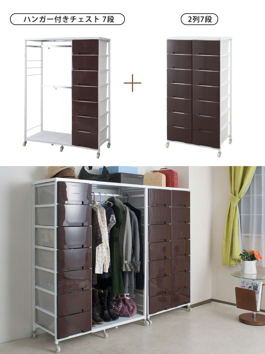 ![]() ハンガー付きチェスト 引き出し7段 高さ141cm | ![]() ハンガー付きチェスト 引き出し9段 高さ181cm |