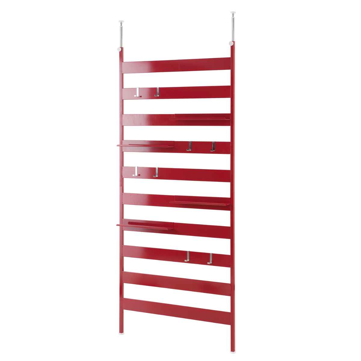 突っ張りラダーラック 幅広ラダーラック 幅86cm 棚板4枚付き ( 壁面 壁面収納 つっぱり 薄型 ラダーラック 突っ張り ラック 棚付き ウォールラック ウォールシェルフ パーテーション 間仕切り 壁面ラック 収納ラック 棚板 ) 【レッド】