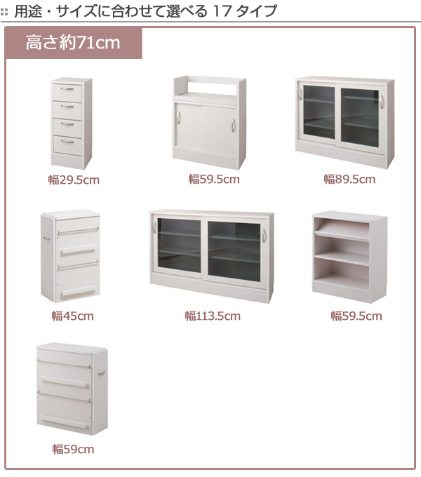 ![]() おすすめポイント ![]() 使いやすさを考えた充実の機能清潔感のあるすっきりとしたデザイン性と日々使いやすい便利な機能性を追及したFAX台です。カウンター上等に設置していたFAXの置き場所もカウンター下にする事でスッキリ綺麗にまとまります。 スライド棚FAXや電話を置いても使いやすいよう、上部の棚はスライド棚になっています。使いたい時にサッと引き出せて便利にお使いいただけます。 可動棚収納する物の高さに合わせて調節できる可動棚は、6cmピッチ4段階で調節していただけます。 いろんな場所で便利に使えるカウンター下のデッドスペースを有効活用できるFAX台は、リビングに置いても圧迫感のない薄型設計で一人暮らしのお部屋にもオススメです。カウンター下はもちろん窓下や廊下などリビングに限らず幅広く便利に活用できます。 シリーズで揃えて快適な収納空間をデザイン性と機能性を追求したカウンター下収納シリーズは全17タイプからお選びいただけます。別売りの引戸タイプやチェストと並べれば、多収納&多機能なスッキリ空間に早変わりします。 サイズ ![]() |