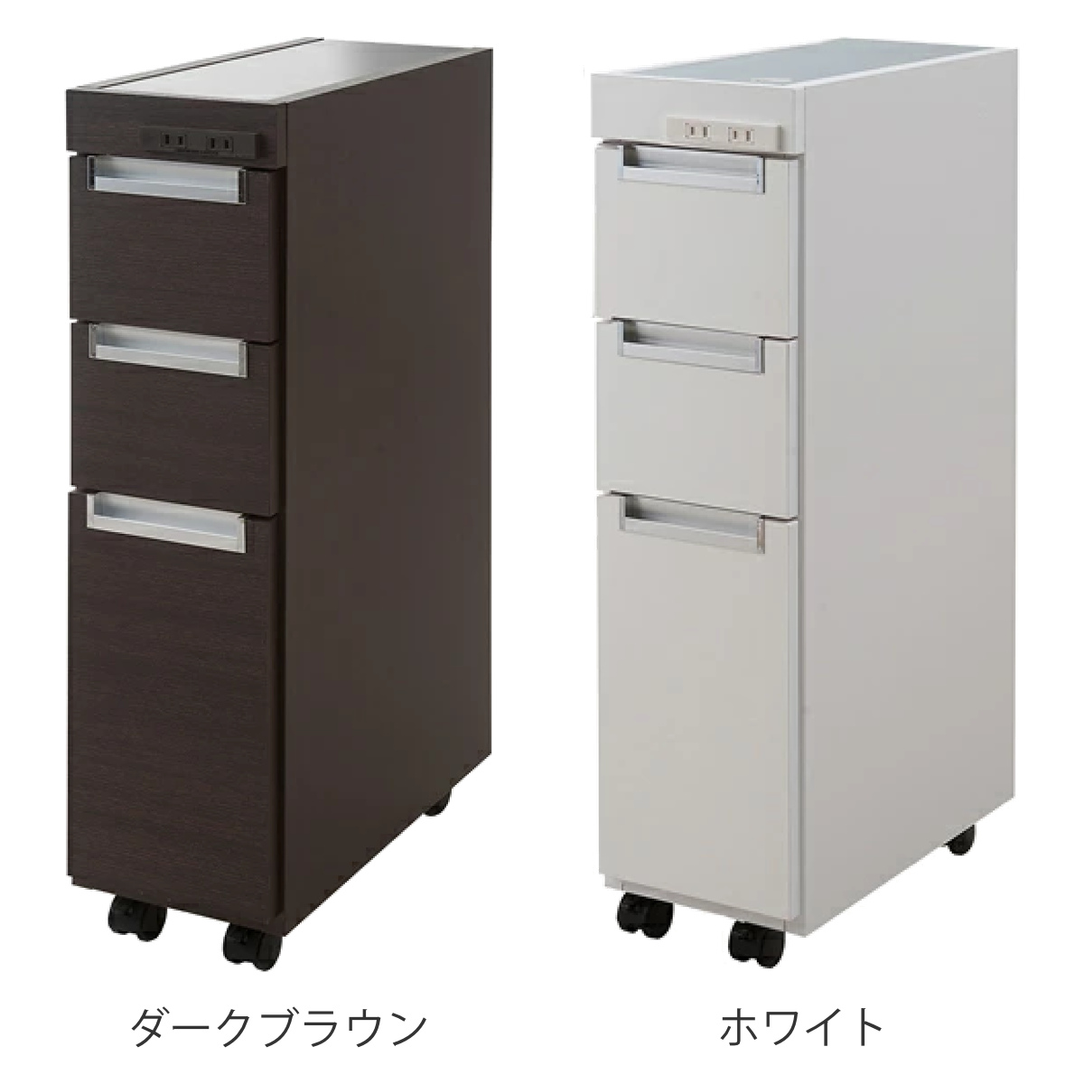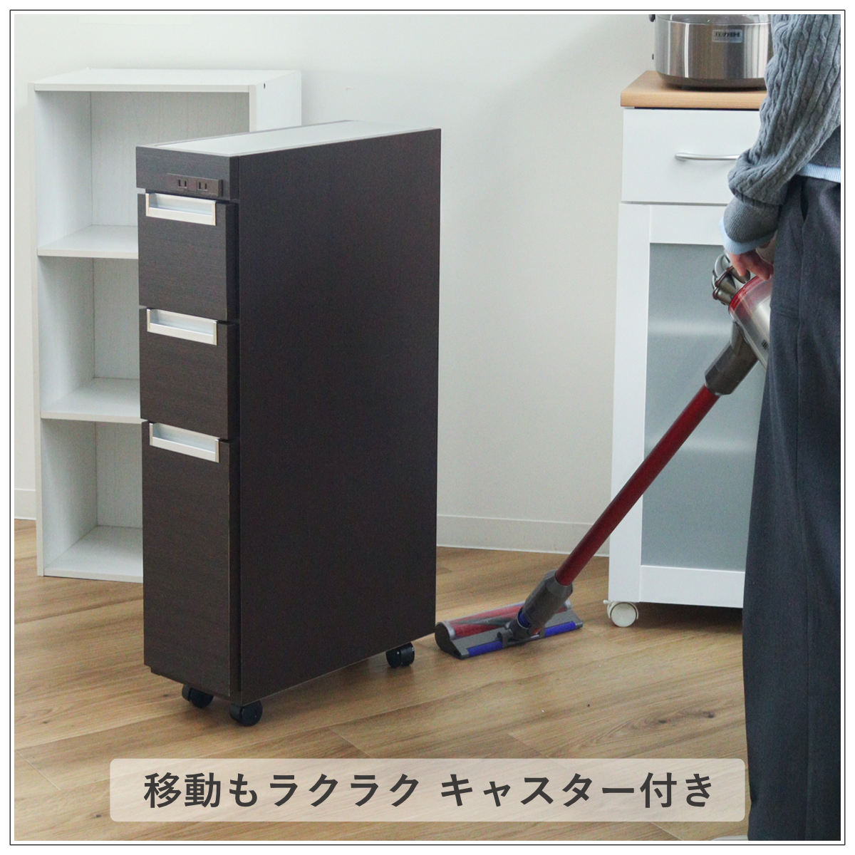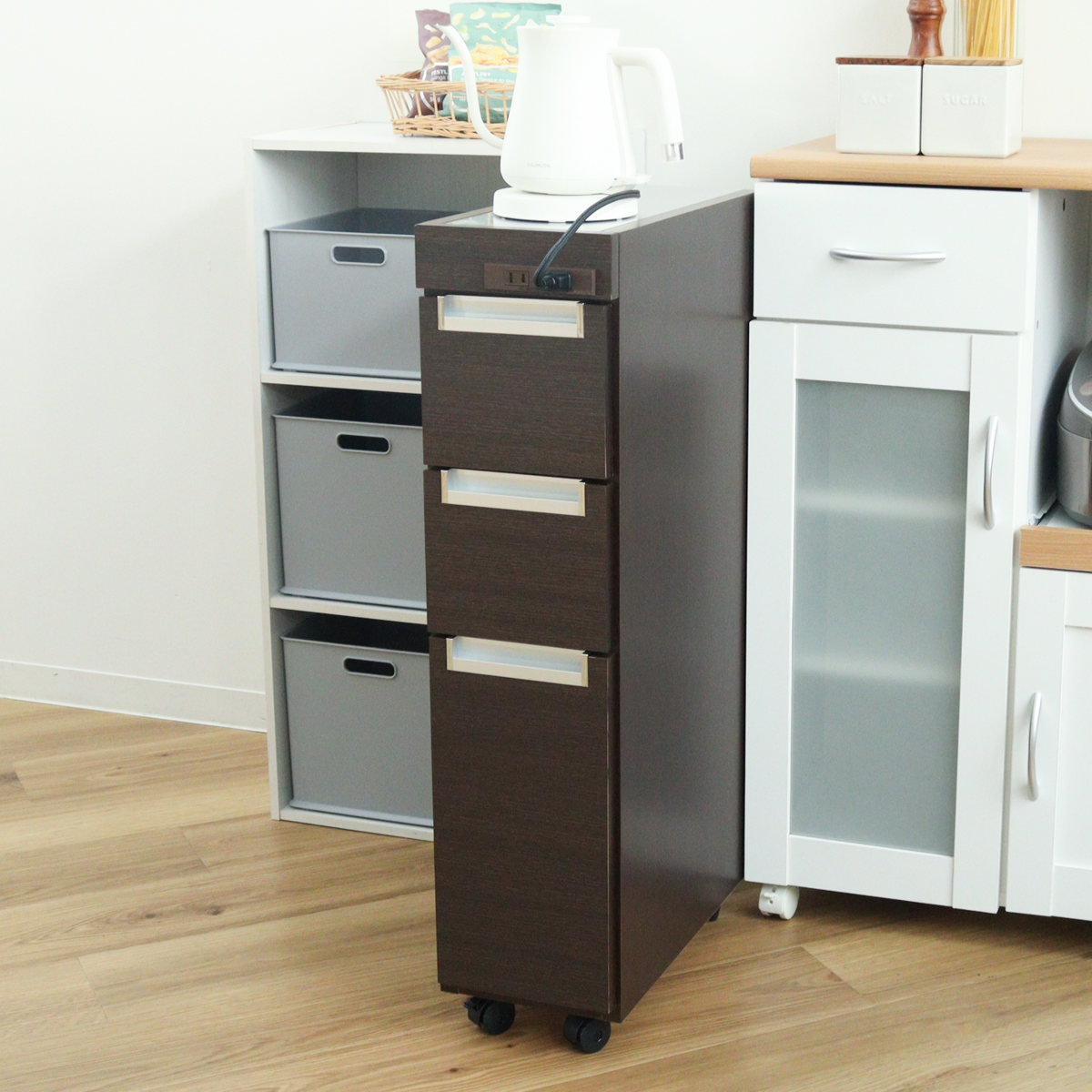 キッチンカウンター スリムカウンター ステンレストップ 幅20.5cm ( キッチンワゴン キッチン 収納 キッチンラック スリム 完成品 日本製 キッチン収納 ワゴン 隙間 すき間 省スペース 白 ブラウン キャスター付き コンセント付き ) 【ダークブラウン】