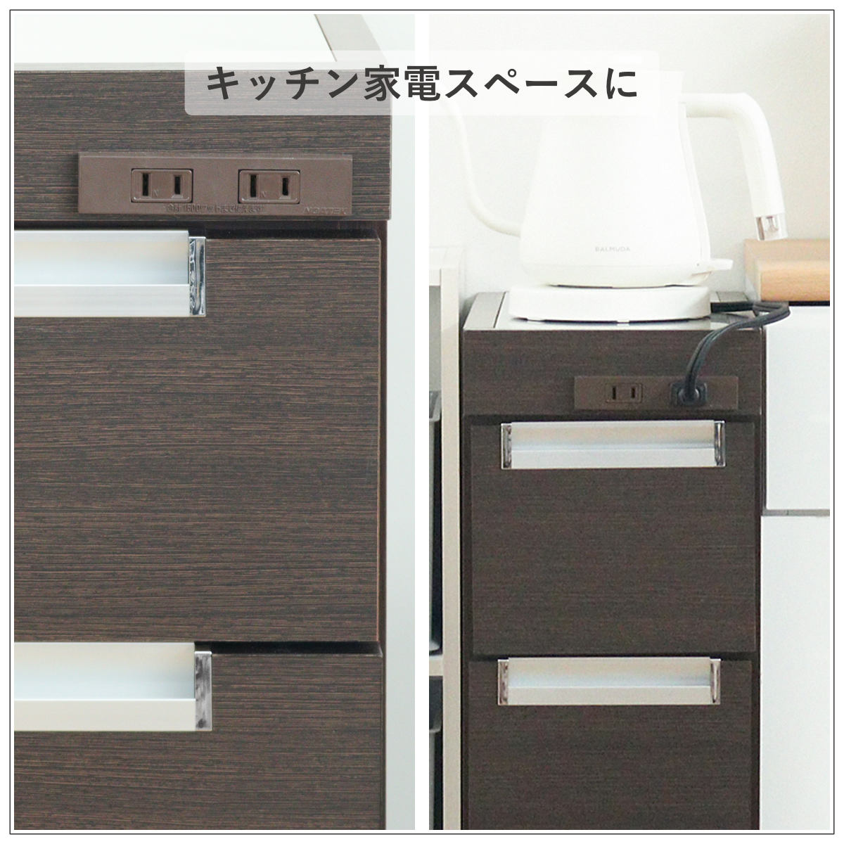 正面に2口コンセント(合計1500W)が付いているので、ケトルや炊飯器などのキッチン小型家電の定位置としても最適です。