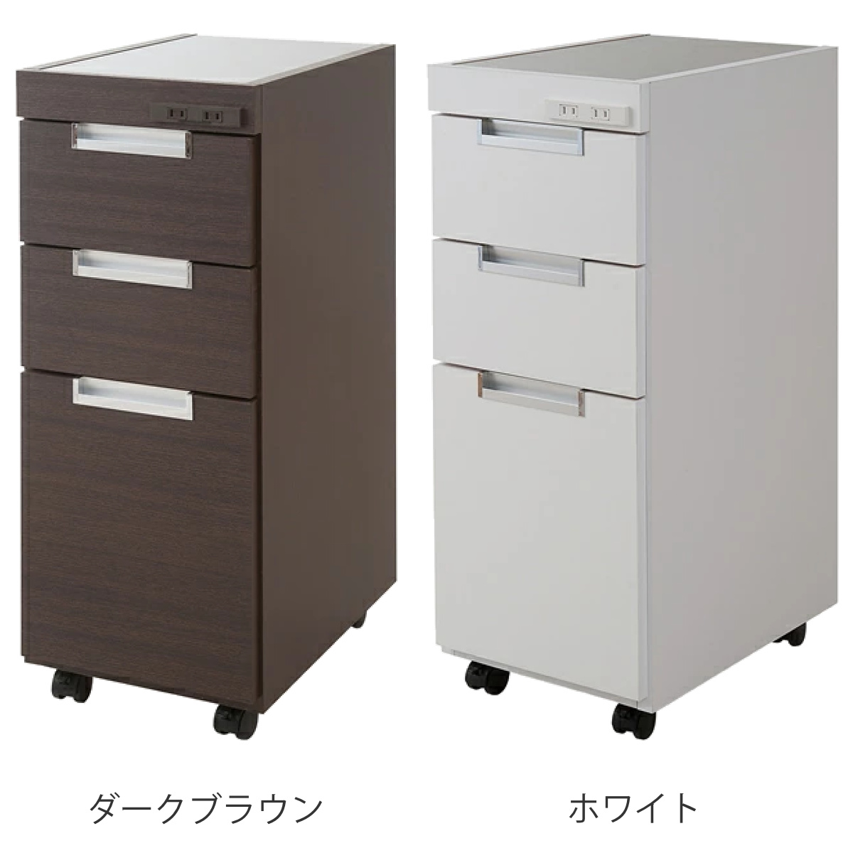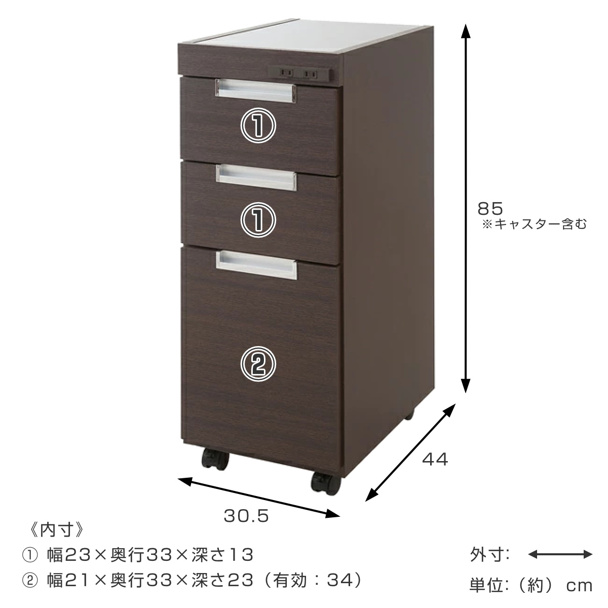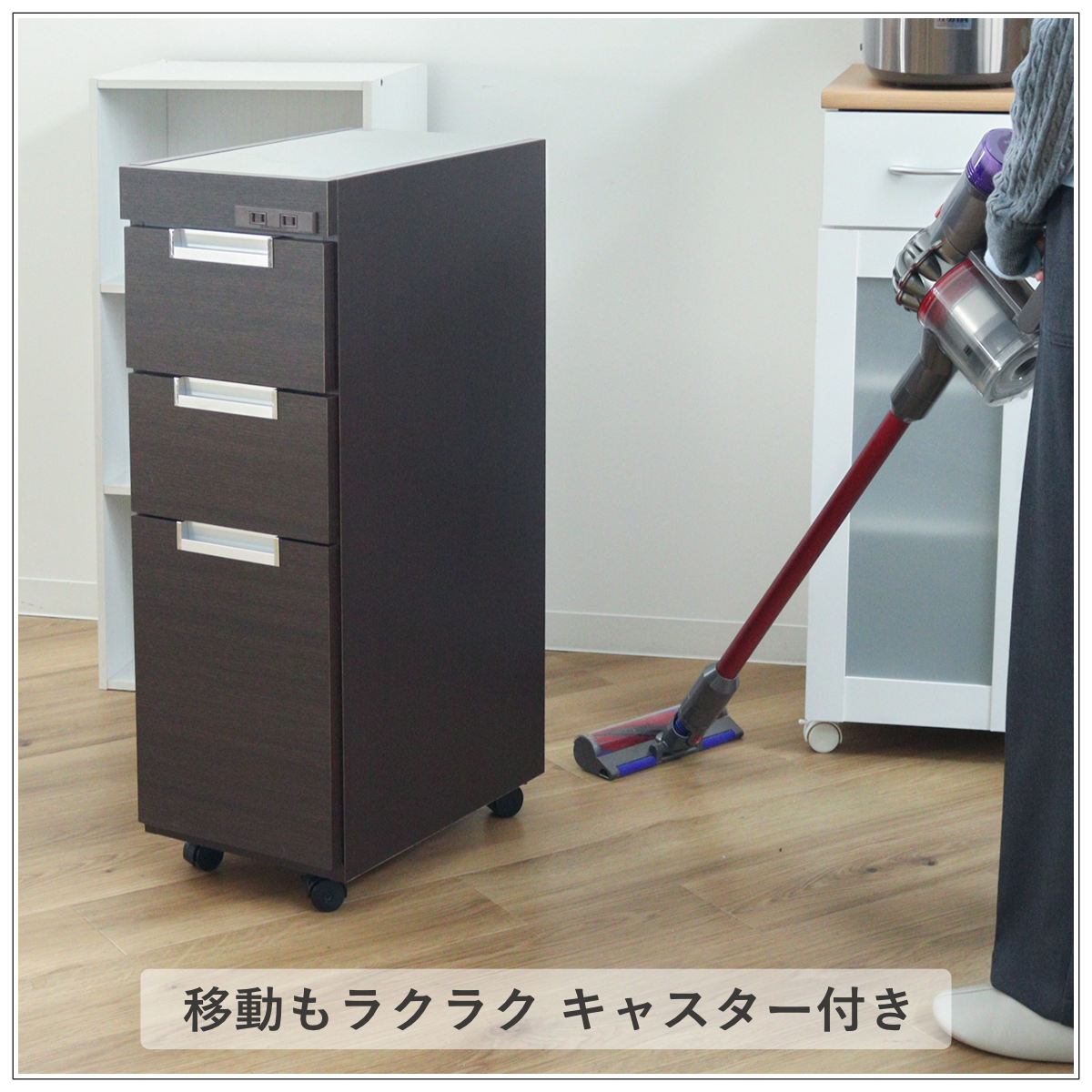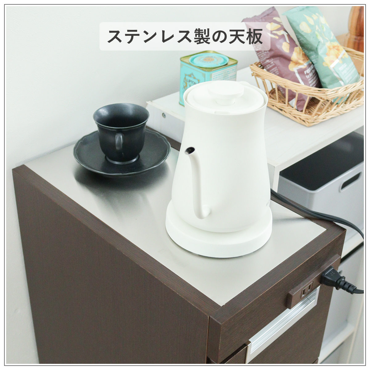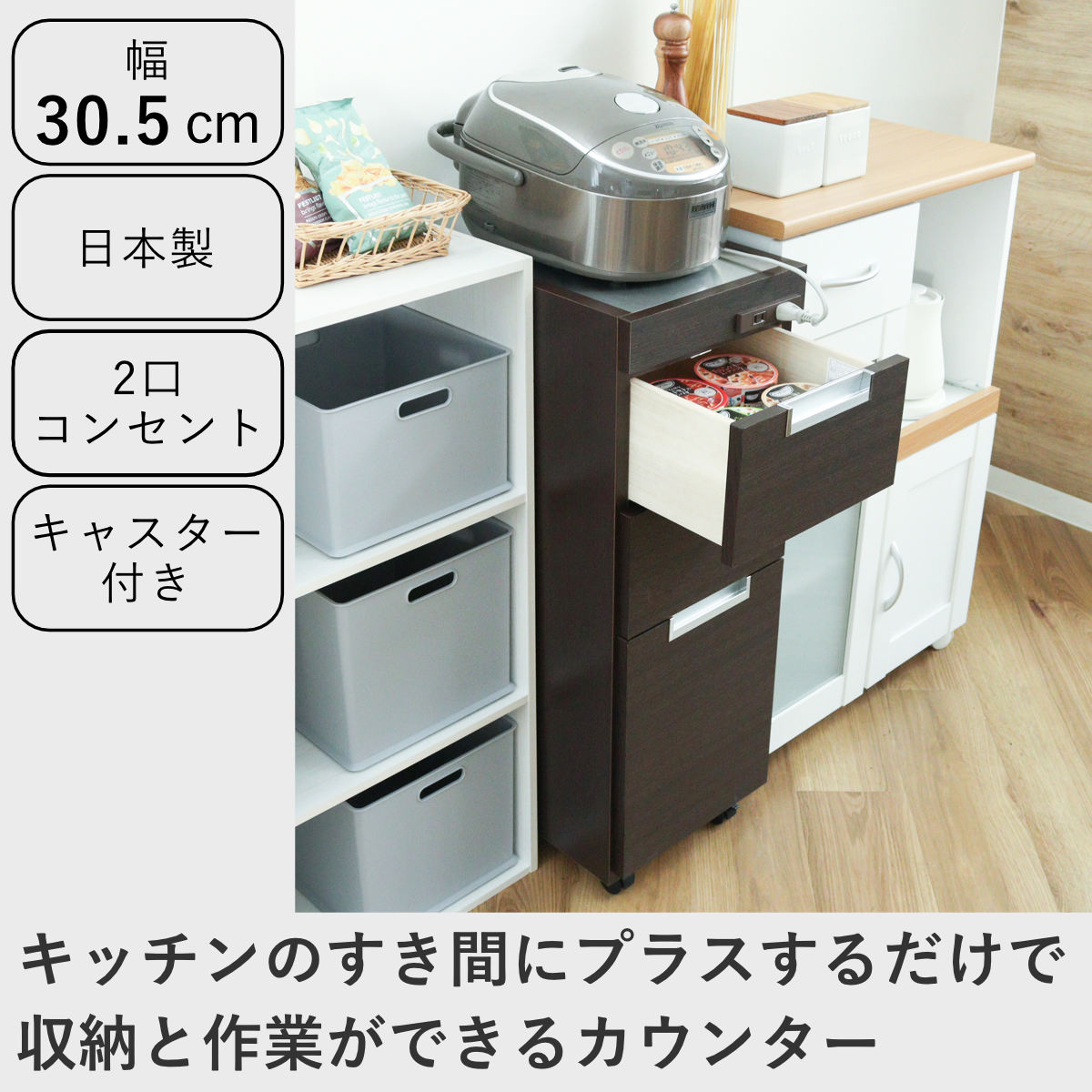 キッチンカウンター スリムカウンター ステンレストップ 幅30.5cm ( キッチンワゴン キッチン 収納 キッチンラック スリム 完成品 日本製 キッチン収納 ワゴン 隙間 すき間 省スペース 白 ブラウン キャスター付き コンセント付き ) 【ホワイト】