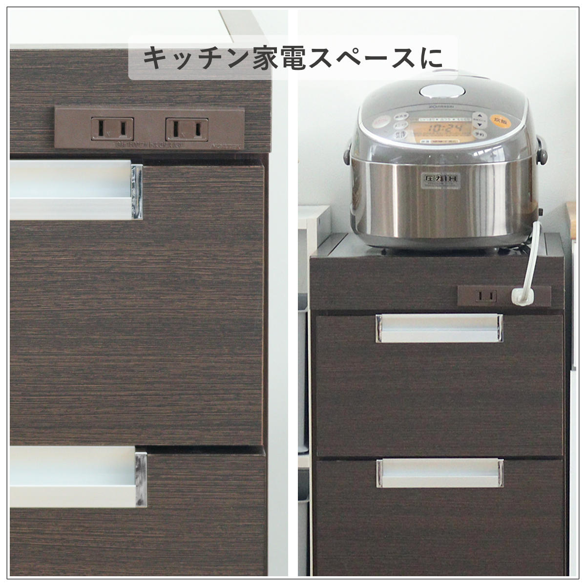 正面に2口コンセント(合計1500W)が付いているので、ケトルや炊飯器などのキッチン小型家電の定位置としても最適です。