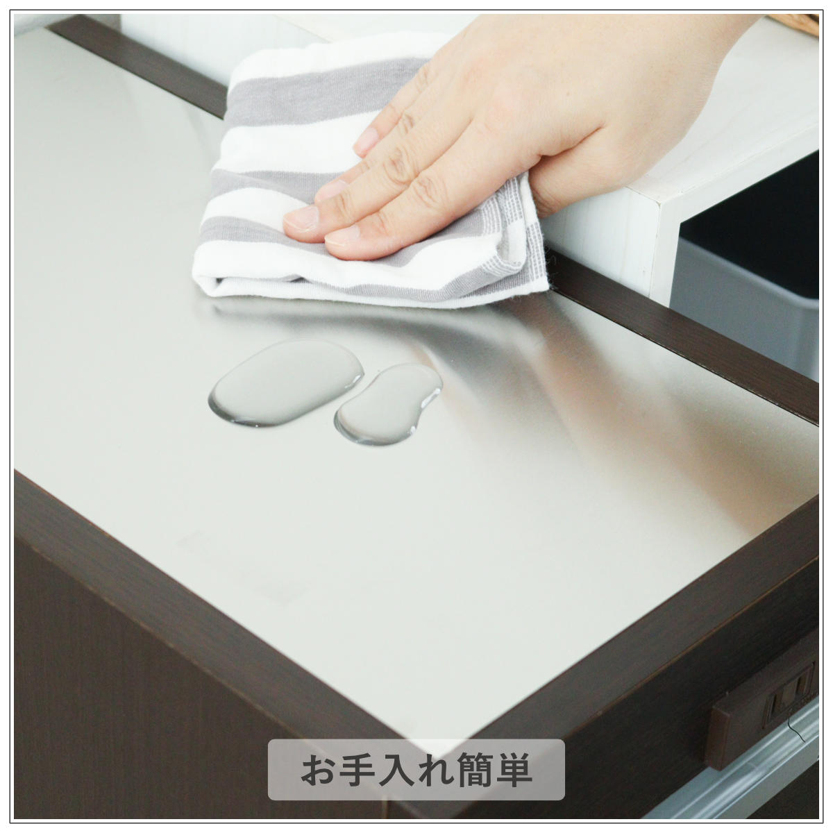 ステンレスの天板は、耐水性に優れているので、汚れてもサッと拭くだけでお手入れが簡単です。
