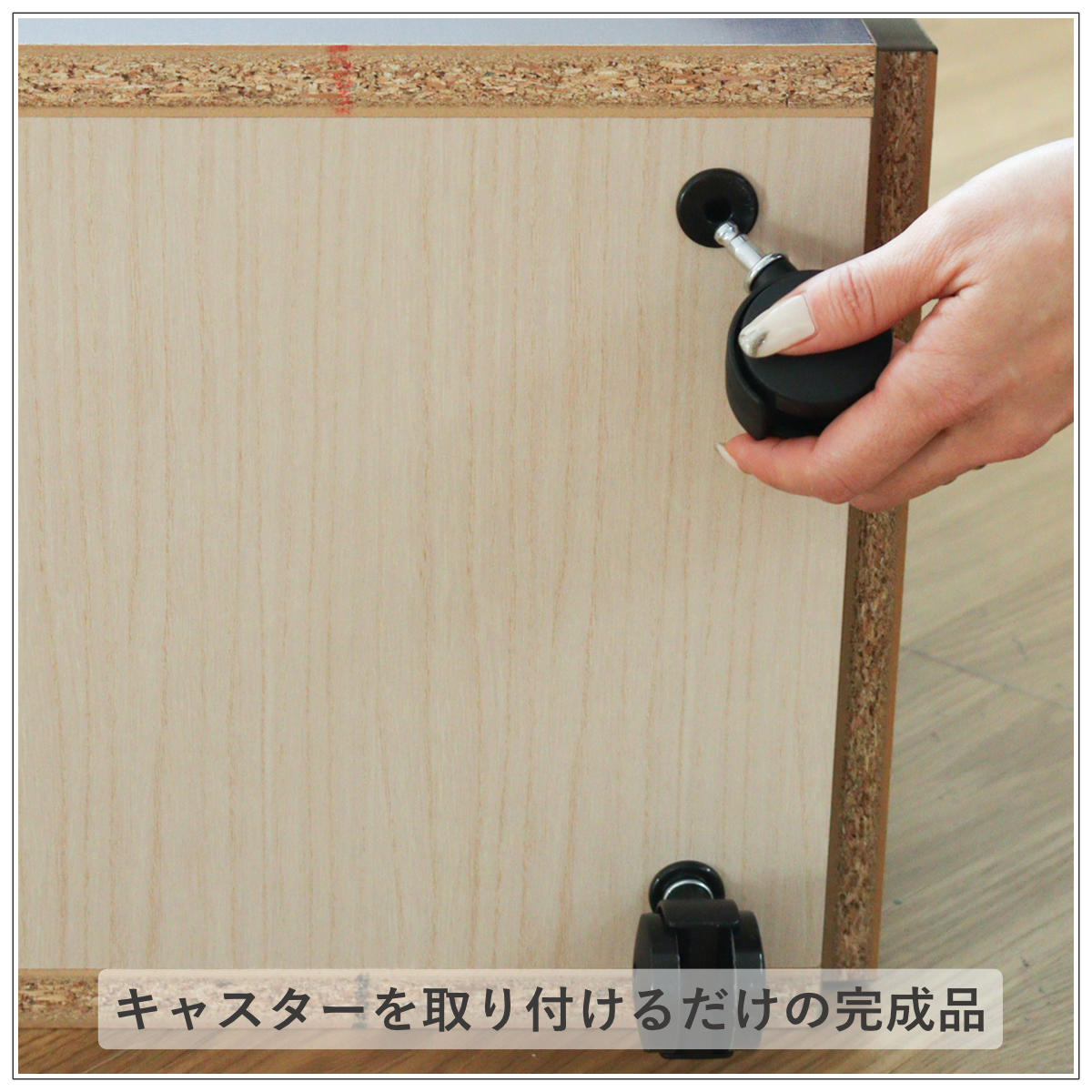 お掃除や模様替えの際もスムーズに移動できるキャスター付きです。2個はストッパー付きなので、しっかりと固定できます。