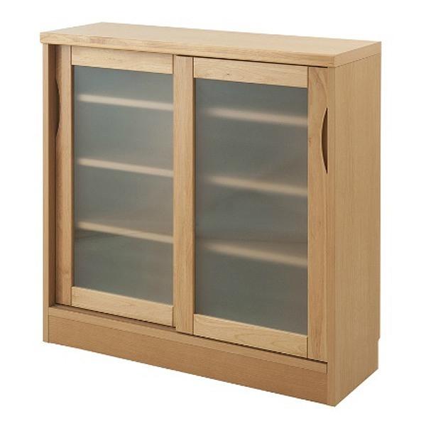 カウンター下収納 ガラス引戸 天然木 アルダー 木製 幅90cm ( 収納棚 窓下 キッチン サイドボード キッチンカウンター カウンター下 収納 キッチン収納 リビング収納 窓下収納 引き戸 食器棚 カップボード ) 【 ナチュラル 】