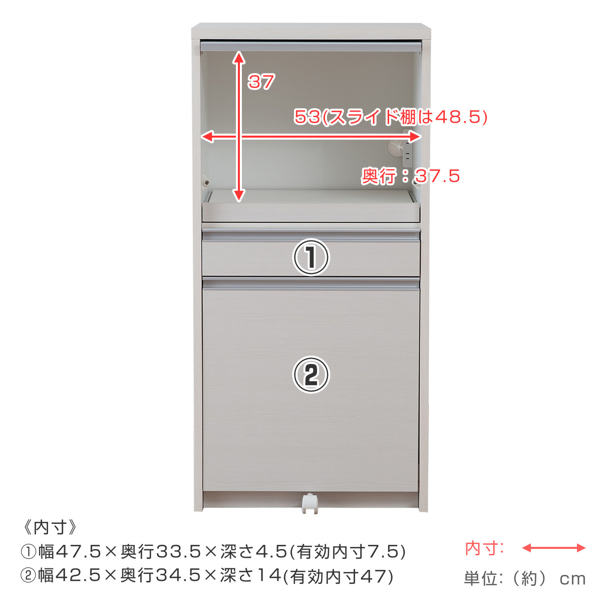 レンジボード 扉付き 家電収納 ダストボックス付 幅58cm ( 完成品 日本製 レンジ台 キッチン収納 ゴミ箱 フラップ 扉 収納 レンジラック 目隠し ゴミ箱収納 家電ラック ホワイト )