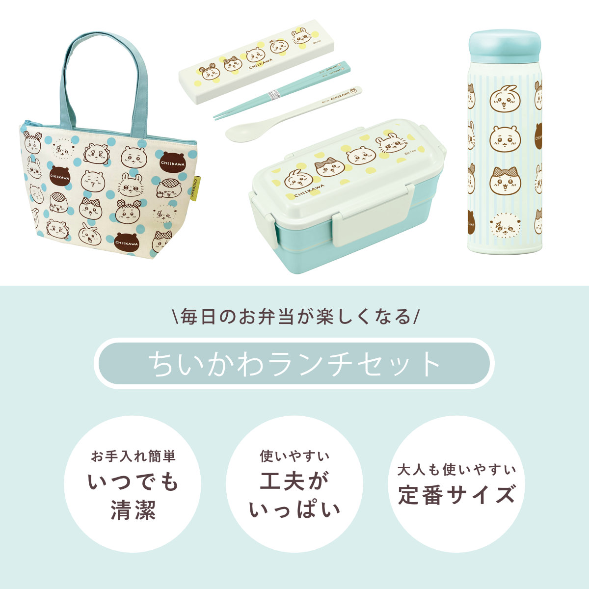 ちいかわランチセット 弁当箱 水筒 ランチバッグ コンビセット ( ランチセット セット 食洗機対応 レンジ対応 二段 抗菌 ドーム型 お弁当 食洗機OK 保冷バッグ 保冷ランチバッグ マグボトル 保温 保冷 カトラリーセット 4点ロック )