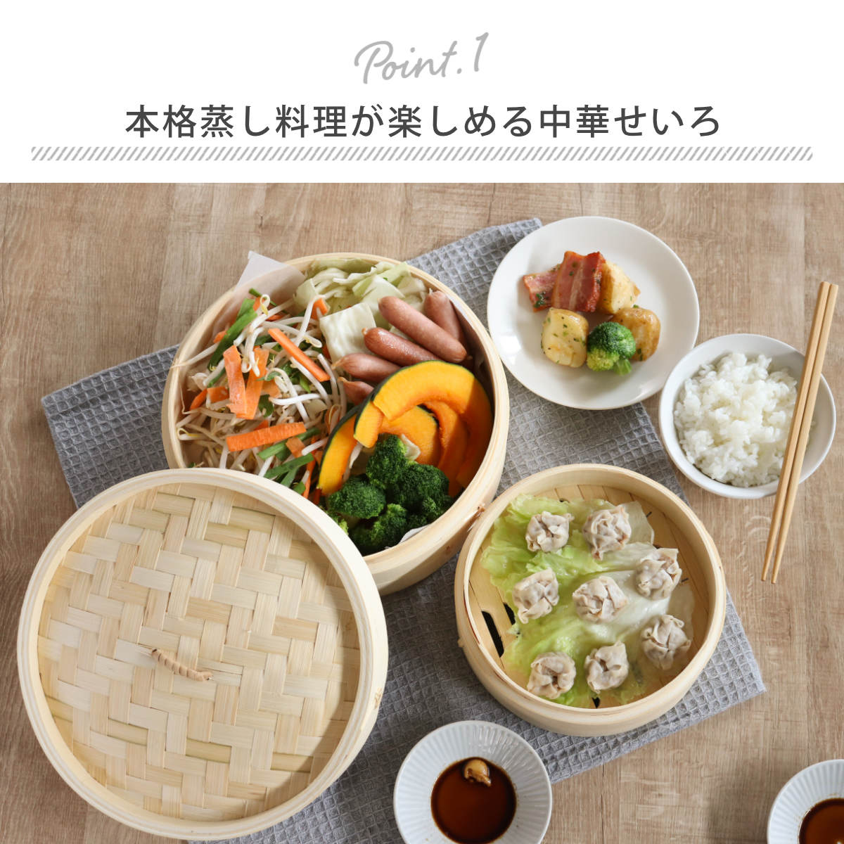 お家で手軽にヘルシーな蒸し料理が楽しめる、中華家シリーズのせいろです。蒸し料理は食材の栄養や旨味を逃さず、素材本来の味を引き出すことができます。