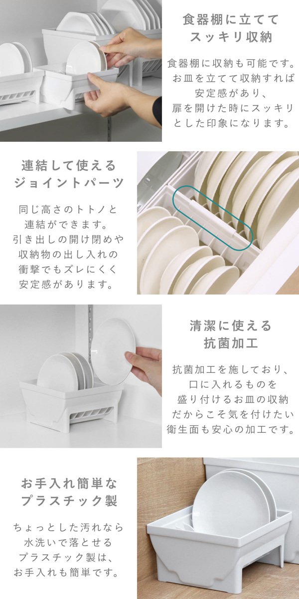 ディッシュラック 4点セット トトノ 引き出し用 ディッシュスタンド お椀スタンド ( totono お皿 収納 日本製 食器収納 食器立て 食器ラック 茶碗 抗菌 食器 皿立て プレート お椀 立て 置き 整理 シンク下 プラスチック セット )
