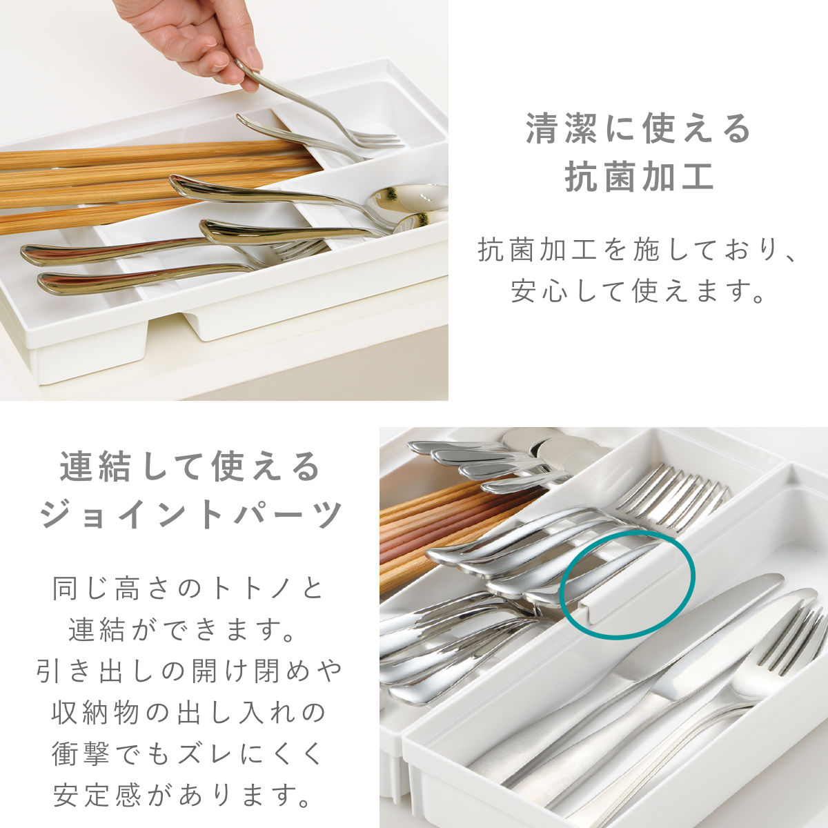 カトラリーケース 2点セット トトノ 引き出し用 カトラリースタンド 傾斜 ( totono カトラリートレー カトラリー収納 引出し収納 日本製 抗菌 キッチン収納 キッチン収納ケース 整理 組み合わせ 連結 整理ケース シンク収納 )