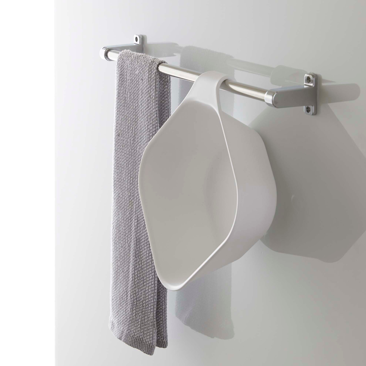 シャワーフックやタオルバーに引っ掛けて水切り・収納が可能です。その他にも浴室扉のハンドルや浴室物干し竿にもお使いいただけます。