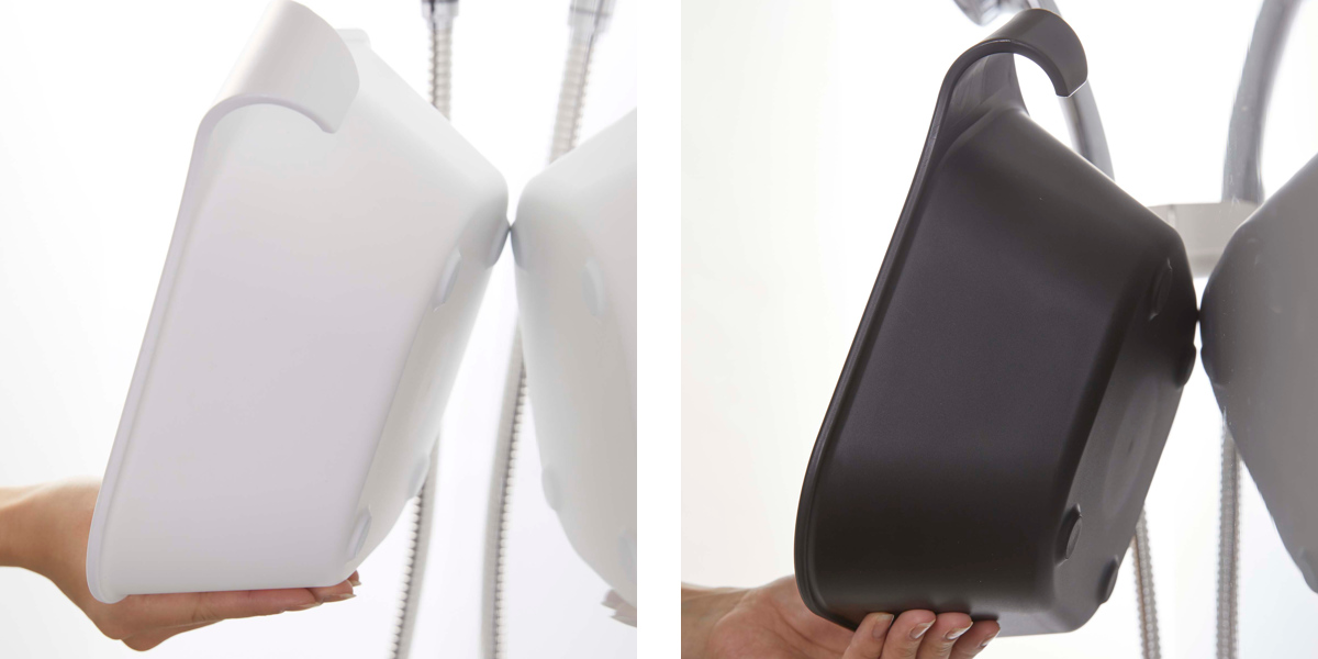 浴室の物干しやタオルバー、浴室扉のハンドルなどに引っ掛けられるフックが付いているので、浮かせて収納できます。