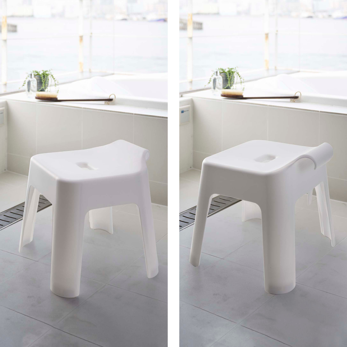 身体を包み込むように中心に向かって緩やかなカーブがついているので、ゆったり座れます。座りながら高い位置のものが取りやすい座面高さ30cmのタイプです。バスカウンター付きの浴室に最適です。本体の脚部分には滑り止め付きで安心してお使いいただけます。