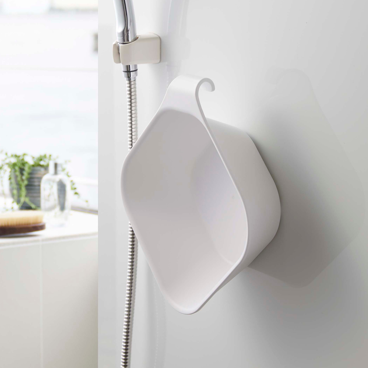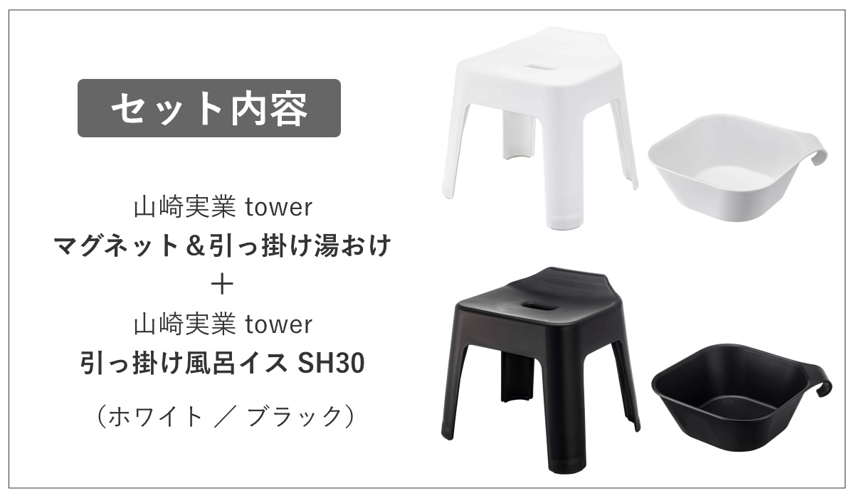 山崎実業 tower 引っ掛け風呂イス SH30+マグネット&引っ掛け湯おけ セット タワー ( 4903208053785 タワーシリーズ 洗面器 風呂おけ 磁石 桶 吊り下げ 壁面 壁 収納 フック 浮かせて収納 バスチェア ) 【ホワイト】