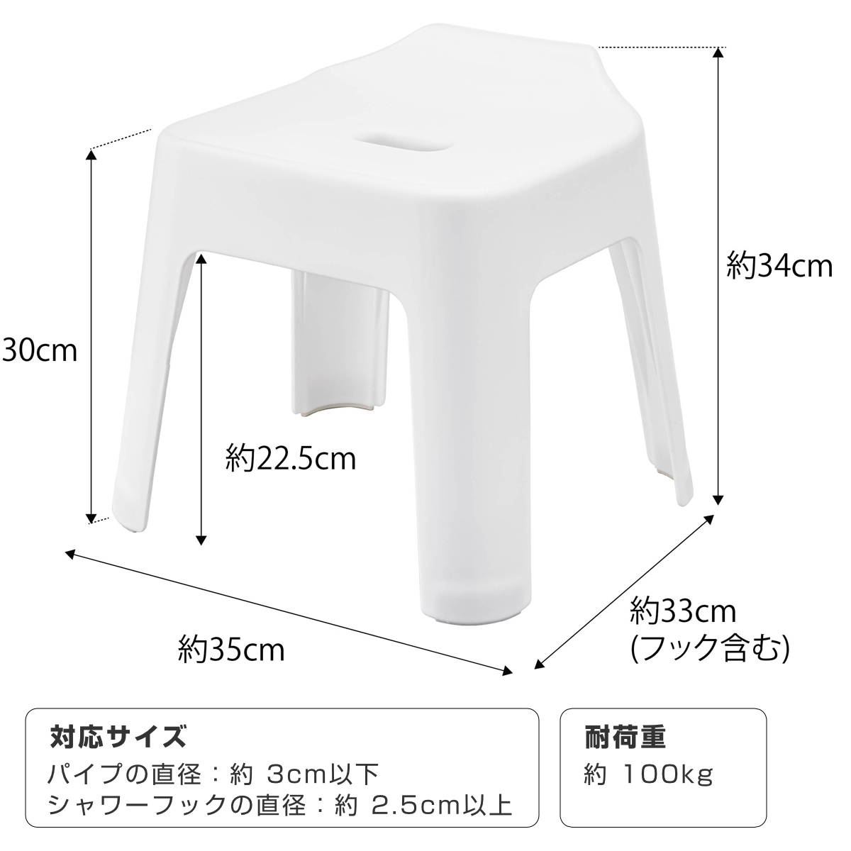 | 対応サイズ | 【マグネット&引っ掛け湯おけ】 パイプの直径/約3cm以下、シャワーフックの直径/約2.5cm以上 【引っ掛け風呂イス】 パイプの直径:約3cm以下、シャワーフックの直径:約2.5cm以上 |