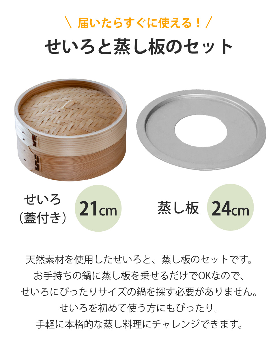 ![]() せいろ15cm+蒸し板セット | ![]() せいろ18cm+蒸し板セット | ![]() せいろ21cm+蒸し板セット 【▲このページの商品】 |