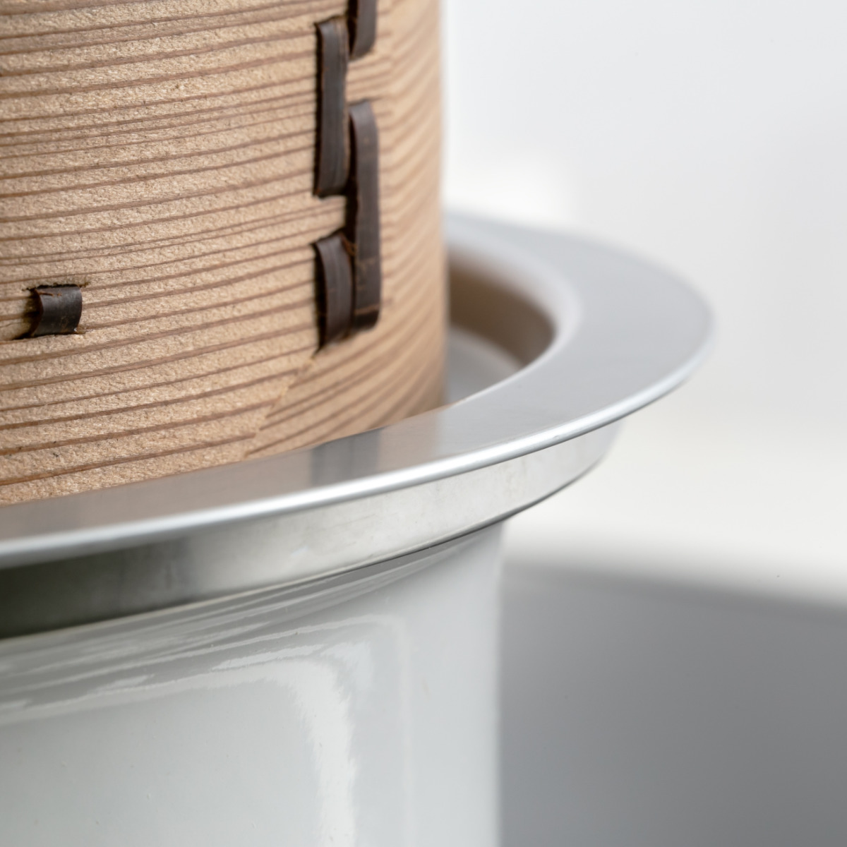 蒸し板付きなので、専用の鍋が無くても、ご家庭でお使いの鍋やフライパンで簡単にせいろ蒸しが楽しめます。使い方はとっても簡単、水が沸騰した鍋にドーナツ状の蒸し板をのせ、その上にせいろを置くだけでOKです。