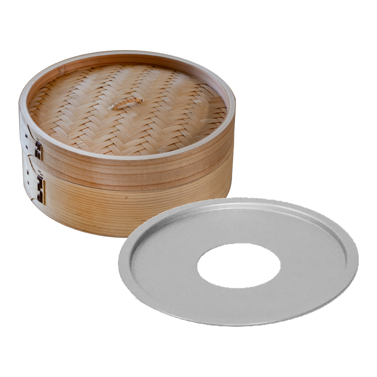 蒸し板付きなので、専用の鍋が無くても、ご家庭でお使いの鍋やフライパンで簡単にせいろ蒸しが楽しめます。使い方はとっても簡単、水が沸騰した鍋にドーナツ状の蒸し板をのせ、その上にせいろを置くだけでOKです。