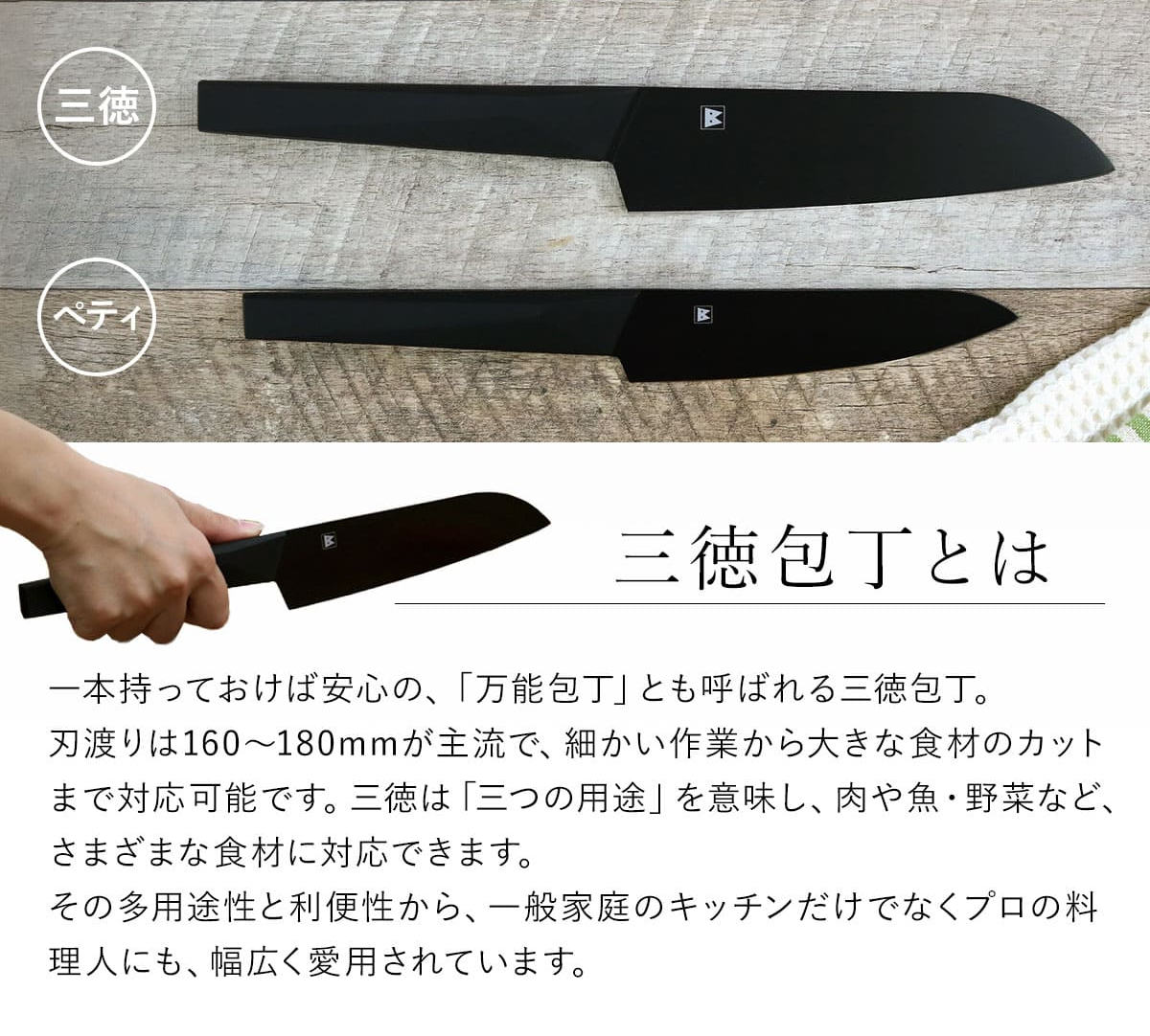 三徳包丁 ペティナイフ 2点セット バイアキッチンブラック ( 包丁 セット 刃渡り 17cm 13.5cm 黒 ブラック ステンレス製 料理包丁 万能包丁 ナイフ ほうちょう 庖丁 3徳包丁 三徳庖丁 果物ナイフ 果物包丁 キッチンナイフ )