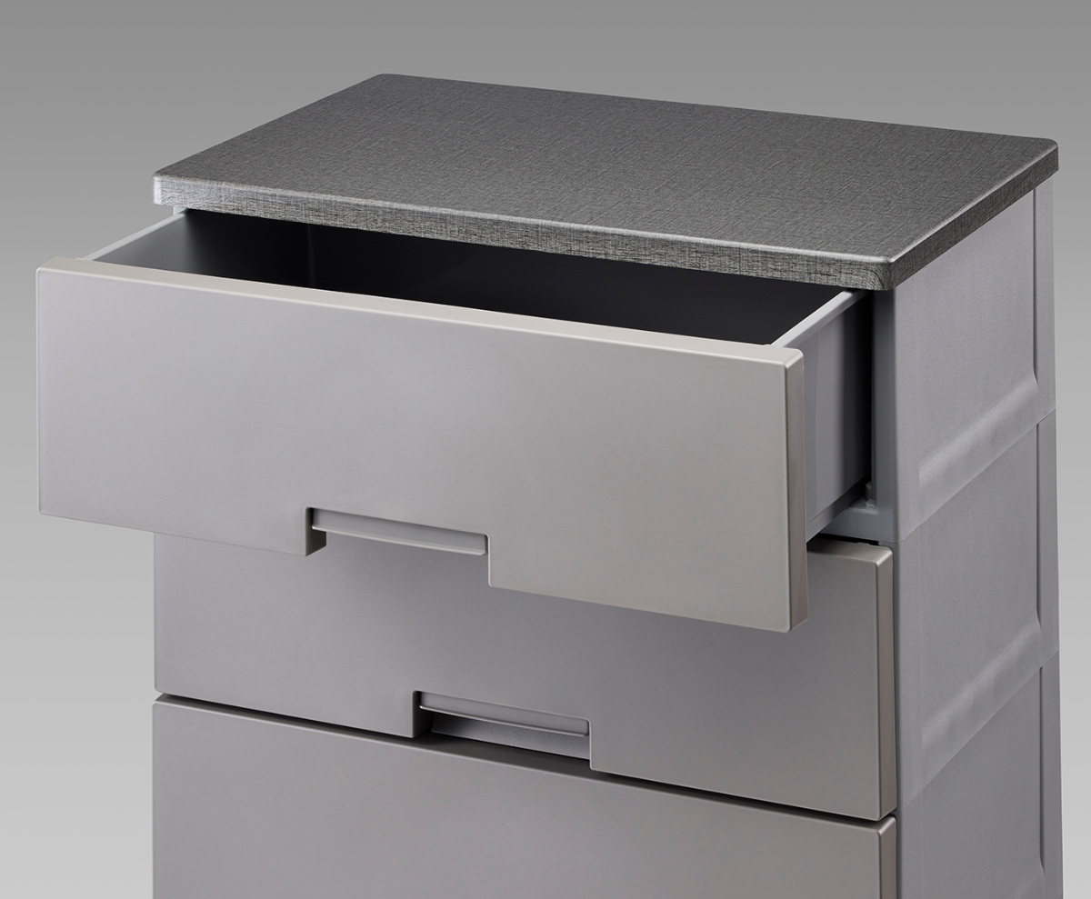 | 材質 | 【チェスト】 引出し・外枠・ロック・脚:再生ポリプロピレン(再生材比率10%以上) ローラー:ポリプロピレン すべり止め:ポリエチレン 前パネル:スチロール樹脂 天板:プリント化粧木質繊維板 【キャスター】 本体:ナイロン 軸:スチール |