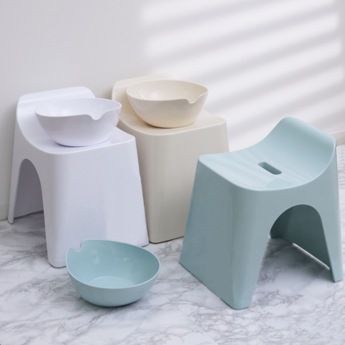 「風呂いす」、「湯おけ」、「手おけ」のシリーズに揃えるとバスルームに統一感が生まれ、より美しく居心地の良い空間をつくれます。