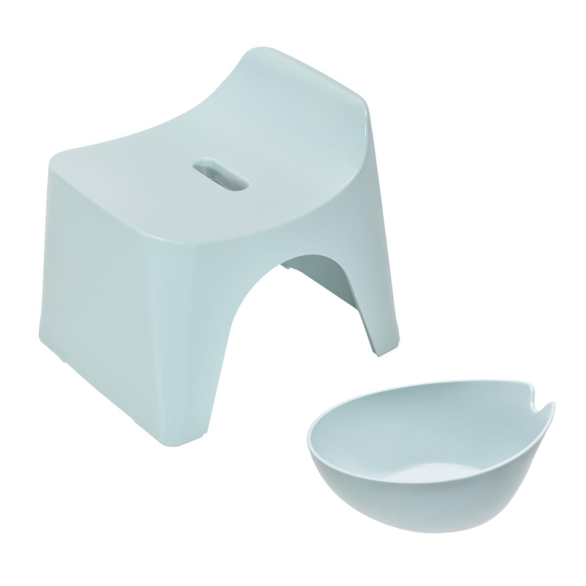 風呂椅子 20cm 湯桶 2点セット ヒューバス バススツール×ウォッシュボール 日本製 ( 風呂イス 風呂いす 座面高さ20cm 湯おけ 洗面器 風呂おけ HUBATH バスチェア バススツール 風呂 椅子 ウォッシュボール 風呂桶 手おけ お風呂 ) 【グレイッシュブルー】