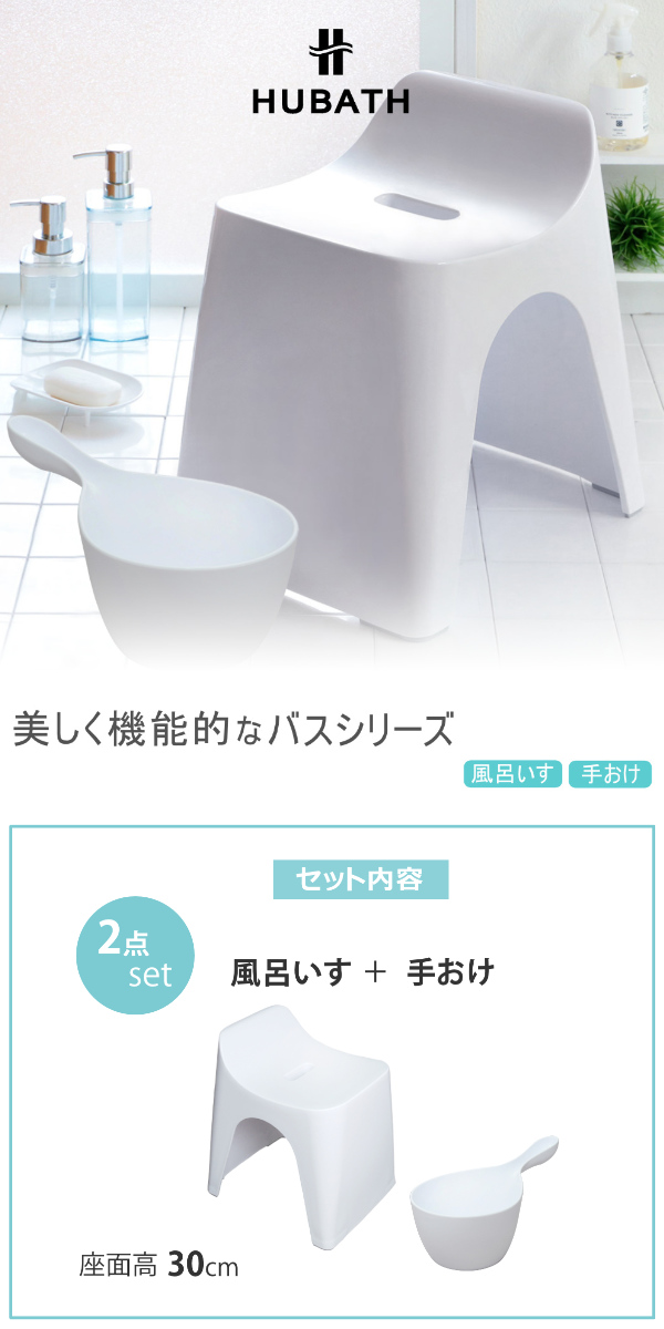 風呂椅子 30cm 手桶 2点セット ヒューバス バススツール×ハンディーボール 日本製 ( 風呂イス 風呂いす 座面高さ30cm 手おけ 洗面器 風呂おけ HUBATH バスチェア バススツール 風呂 椅子 ハンディボール 風呂桶 湯桶 お風呂 ) 【グレー】