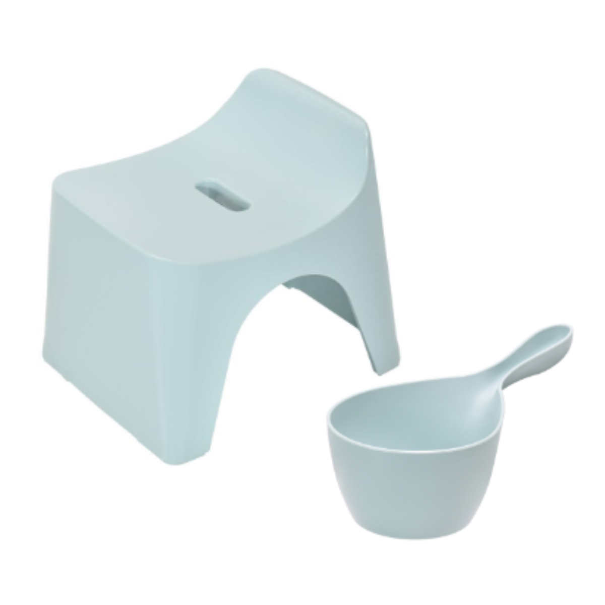 風呂椅子 20cm 手桶 2点セット ヒューバス バススツール×ハンディーボール 日本製 ( 風呂イス 風呂いす 座面高さ20cm 手おけ 洗面器 風呂おけ HUBATH バスチェア バススツール 風呂 椅子 ハンディボール 風呂桶 湯桶 お風呂 ) 【グレイッシュブルー】