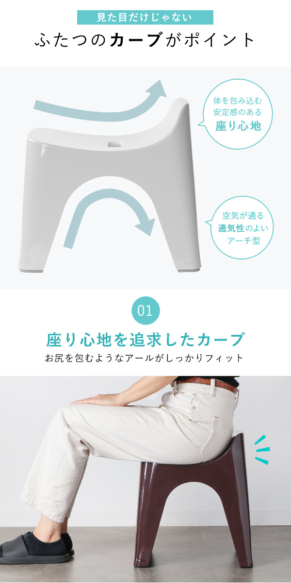 計算された座面の緩やかなカーブラインが身体をすっぽりと包み、抜群の安定感と座り心地を実現しました。身体にフィットして前滑りしにくく、立ったり座ったりがラクにできます。