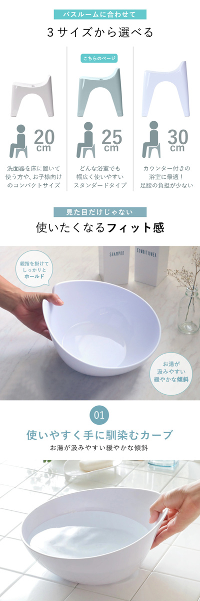 | 備考 | ※座面高20cmと25cmの風呂イスを重ねると密着して抜けにくくなる恐れがあります |