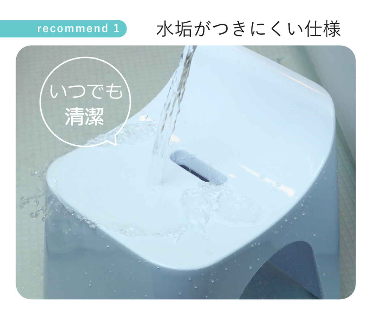 水が溜まるようなムダな凹凸がなく、水垢がつきにくいです。 表面はカビ・ぬめり防止の銀イオン加工を施した鏡面仕上げです。 汚れの付着を防止します。
