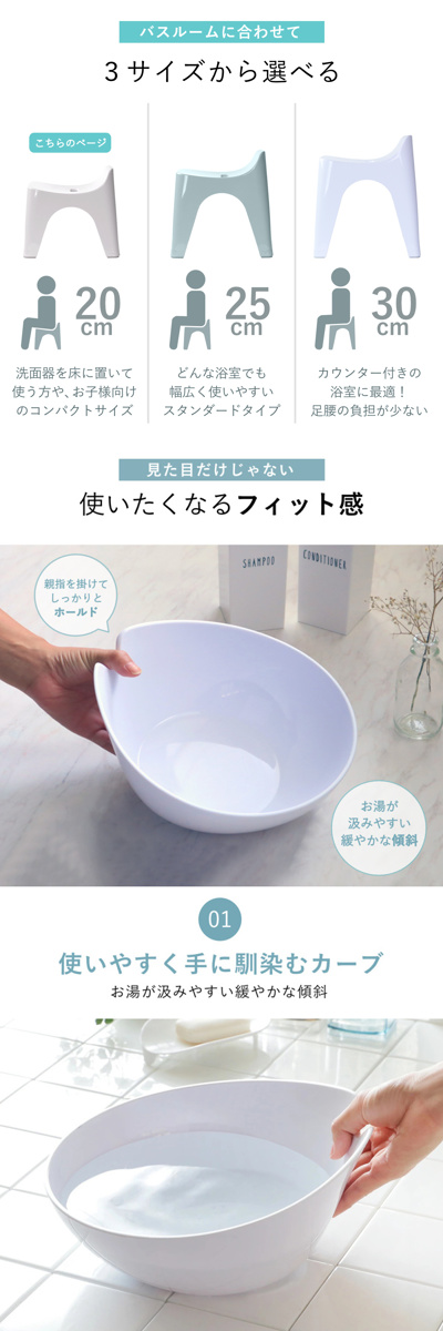 | 備考 | ※座面高20cmと25cmの風呂イスを重ねると密着して抜けにくくなる恐れがあります |
