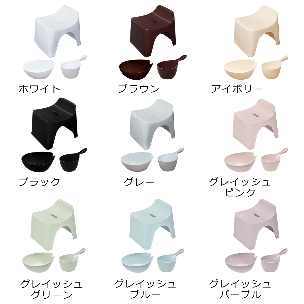 シンプルなデザインと使いやすさを追求した風呂いす、湯おけ、手おけの3点セットです。座面高20cmのコンパクトなサイズでお子様にもお使いいただけます。