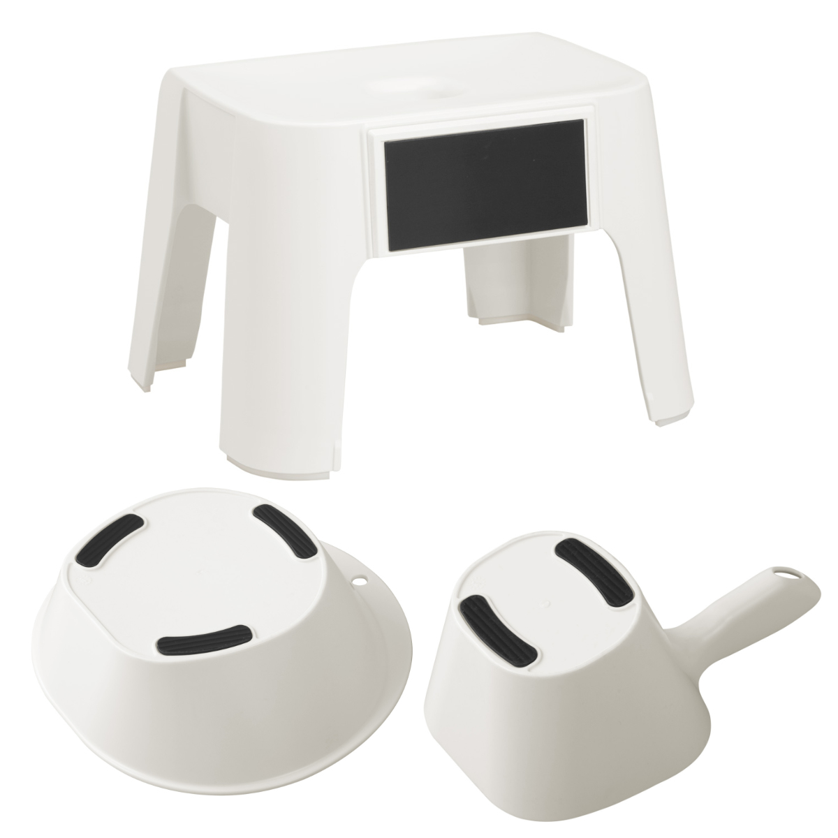 風呂椅子 23cm 湯桶 手桶 3点セット ユニード マグネット 日本製 ( 風呂いす 風呂桶 湯おけ 手おけ お風呂 磁石 腰かけ イス 座面高23 マグネット収納 バスチェア バスグッズ 防カビ 壁面 入浴 モノトーン ブラック ホワイト ) 【ホワイト】