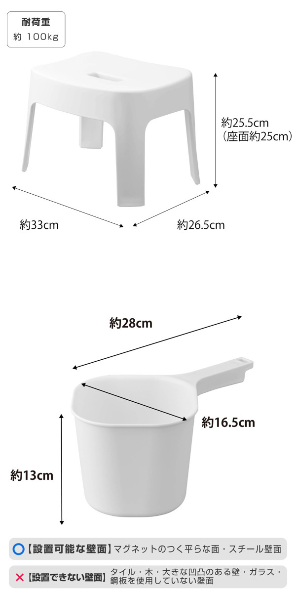 | 内容量 | 【セット内容】 マグネット風呂イス SH25×1 マグネット手おけ×1 |