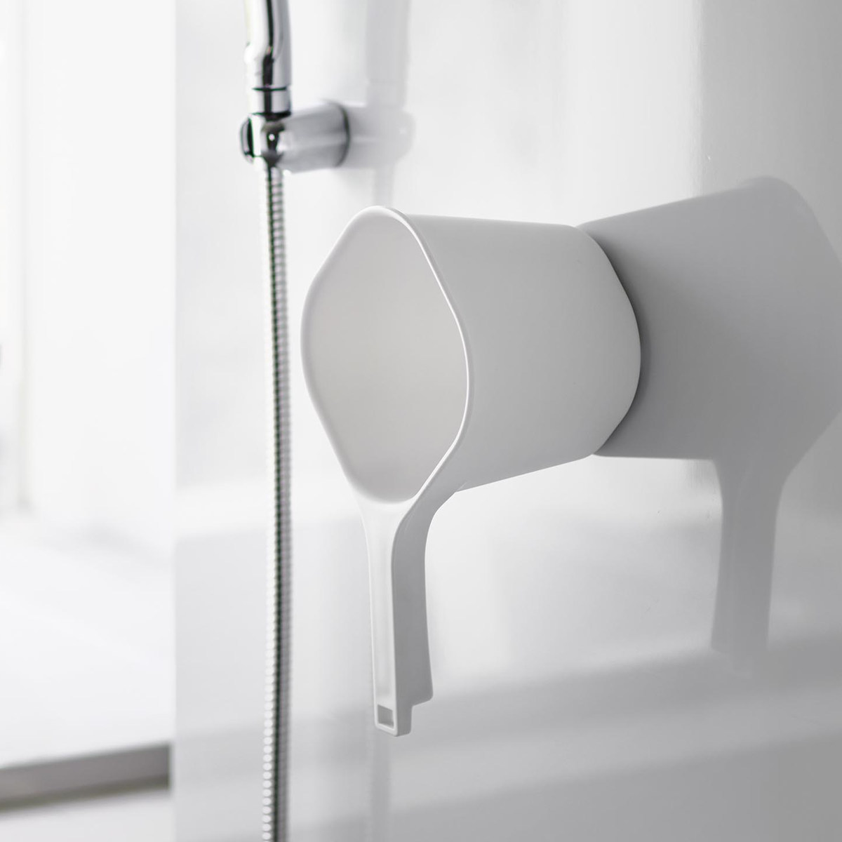 シャワーフックやタオルバーに引っ掛けて水切り・収納が可能です。その他にも浴室扉のハンドルや浴室物干し竿にもお使いいただけます。