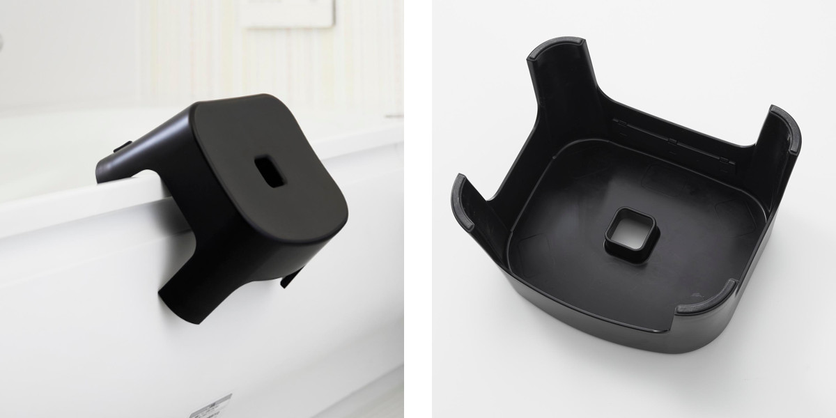 | 引っ掛け収納も可能 マグネットが使えない場合でも、バスタブの縁に掛ければ直接床に置かずに乾かせるので衛生的です。 | 洗いやすくお手入れ簡単 内側は凹凸の少ないスッキリとしたデザインなので水はけも良く、お手入れも簡単です。 |
